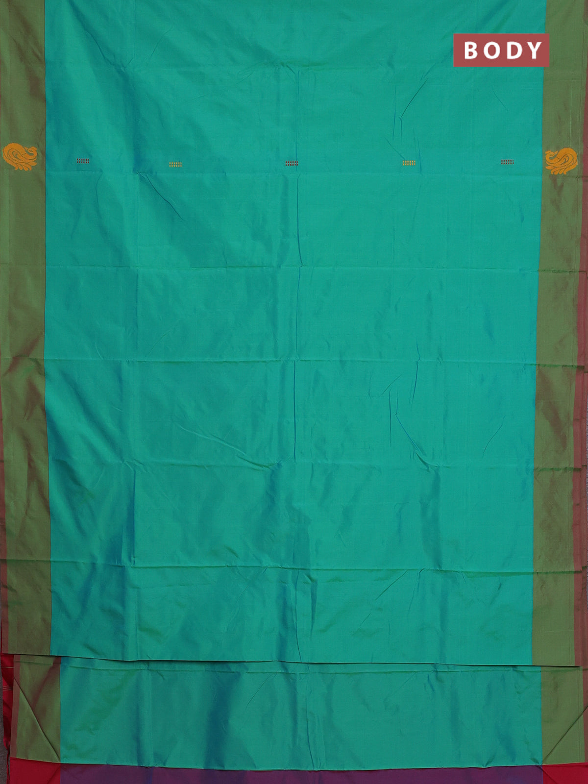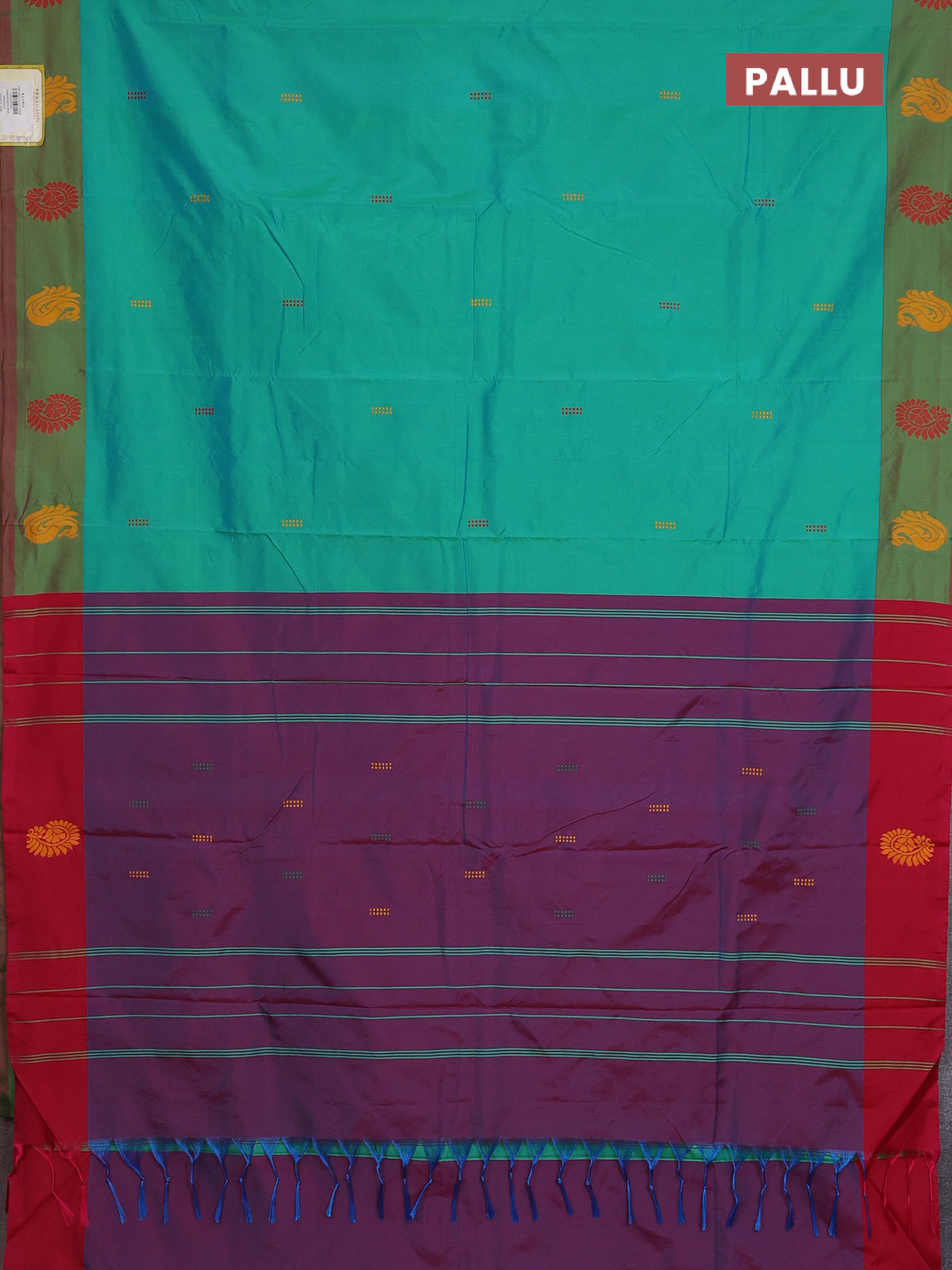 Arani semi silk saree teal green and pink with thread woven buttas and thread woven butta border