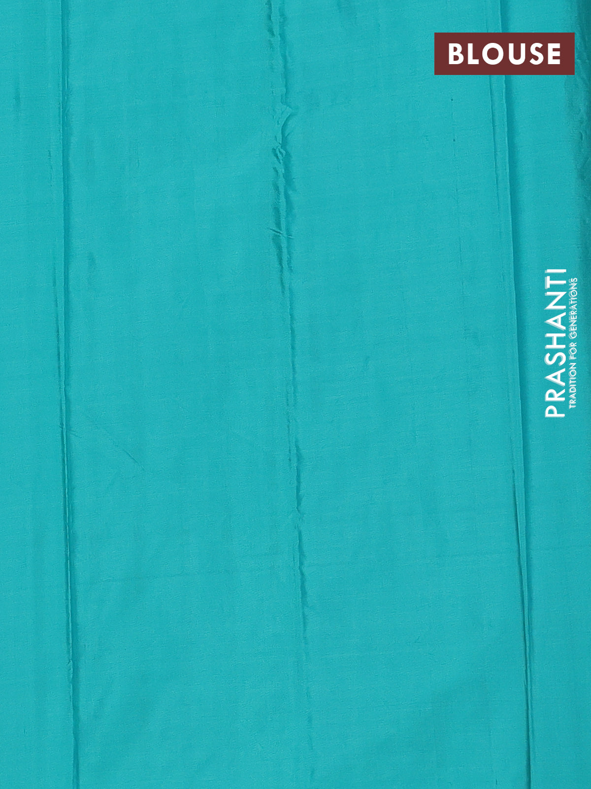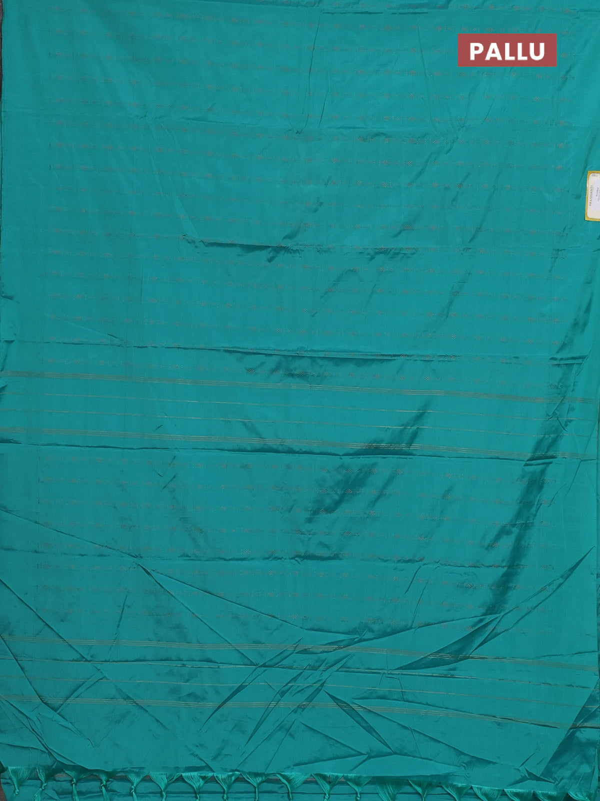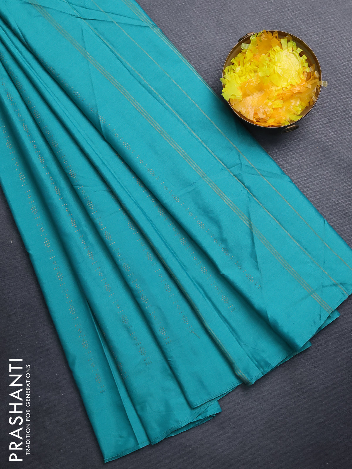Arani semi silk saree teal green with allover copper zari weaves in borderless style