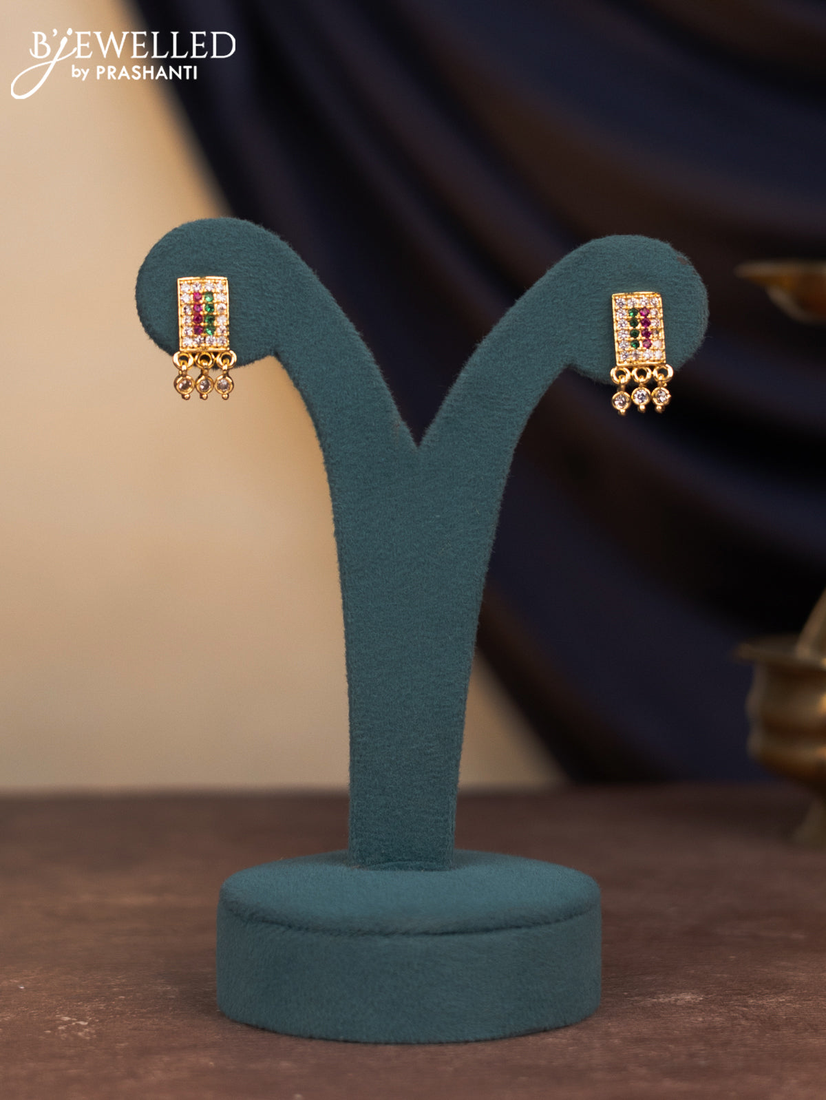 Attigai necklace with kemp & cz stones and hangings in gold finish