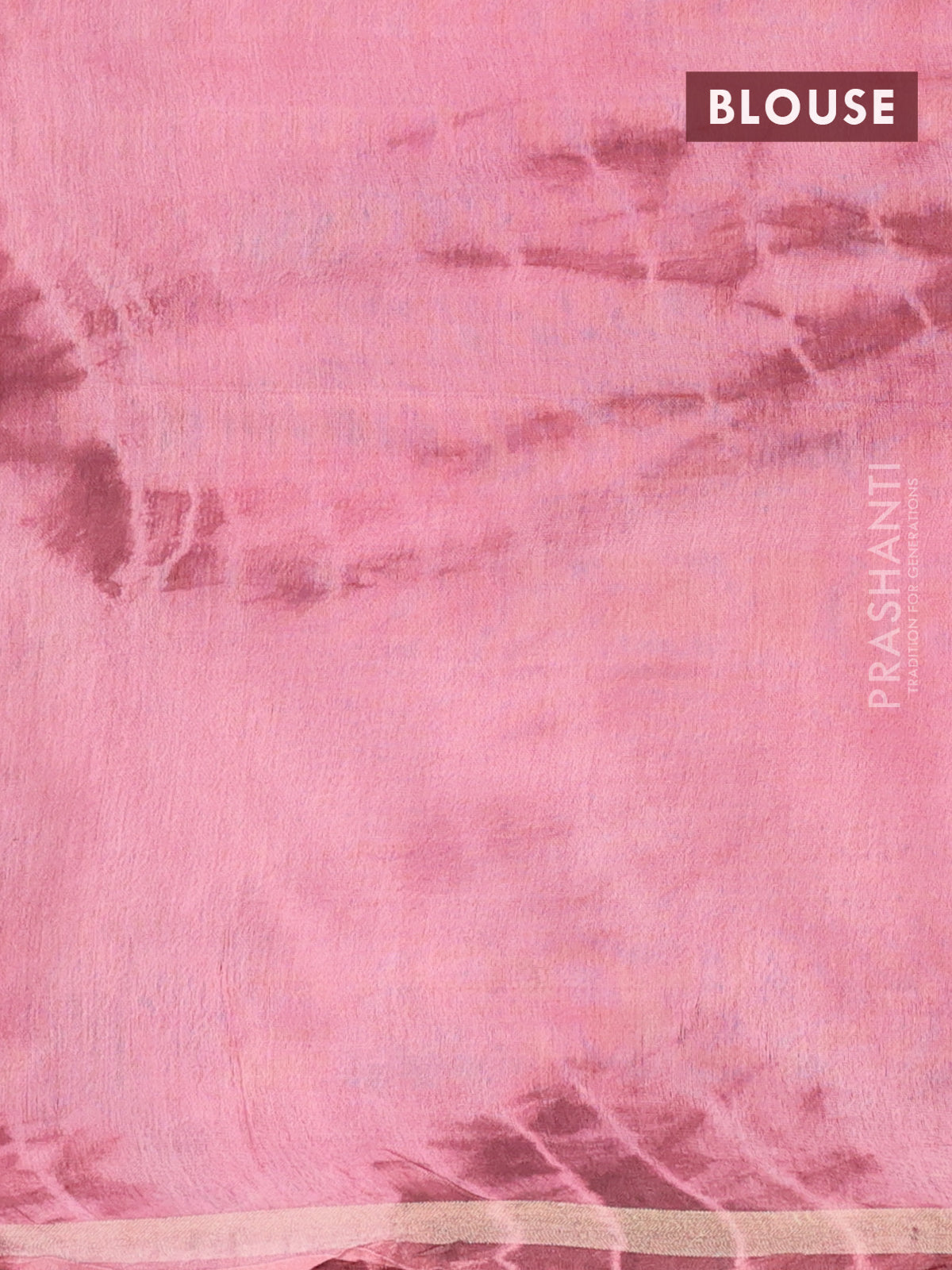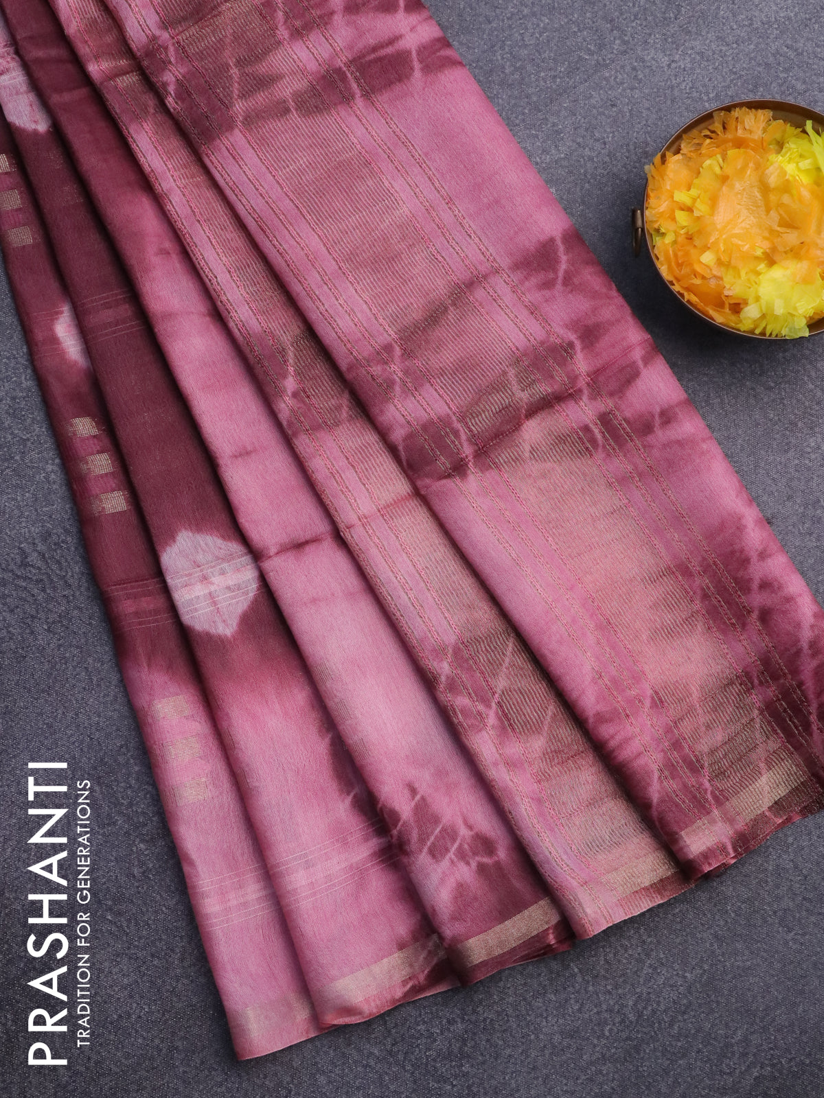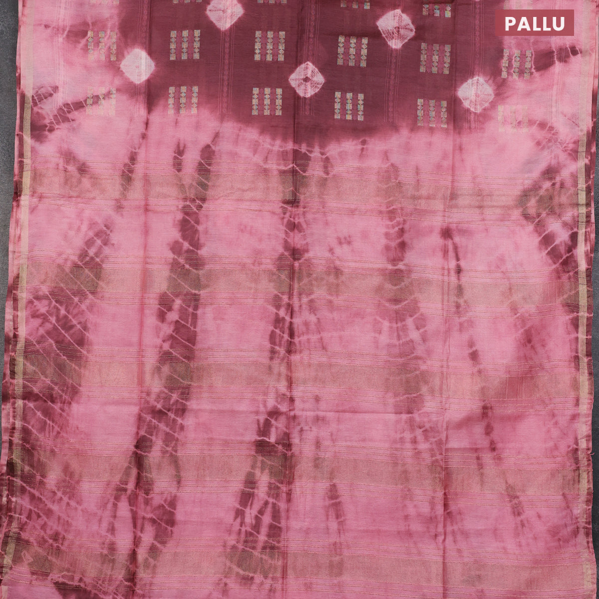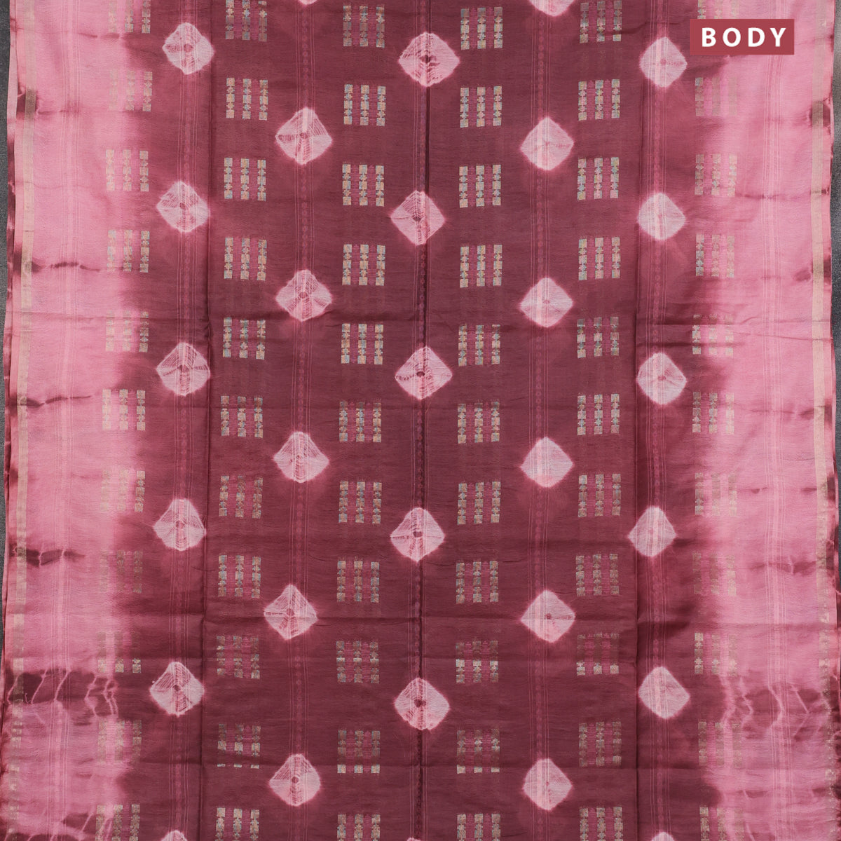 Bamboo saree deep maroon and peach pink with allover zari woven buttas & batik prints and small zari woven border
