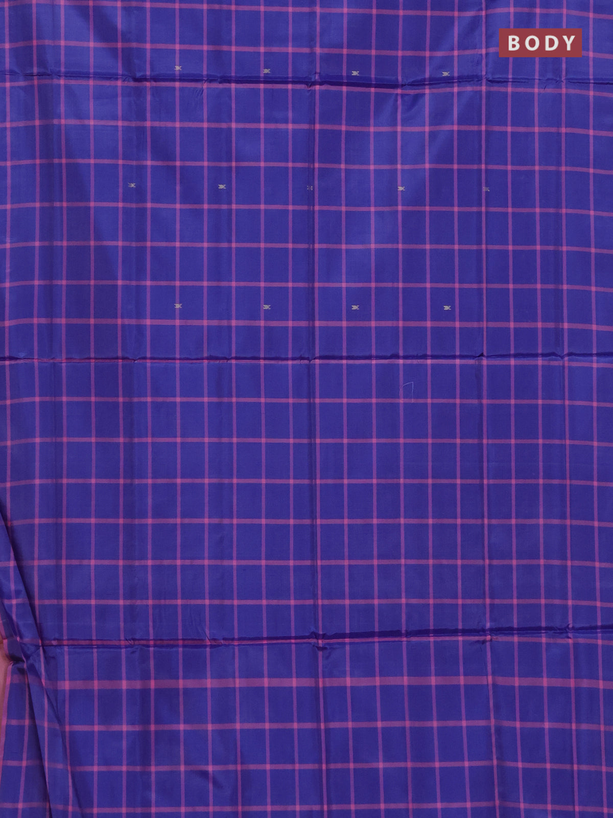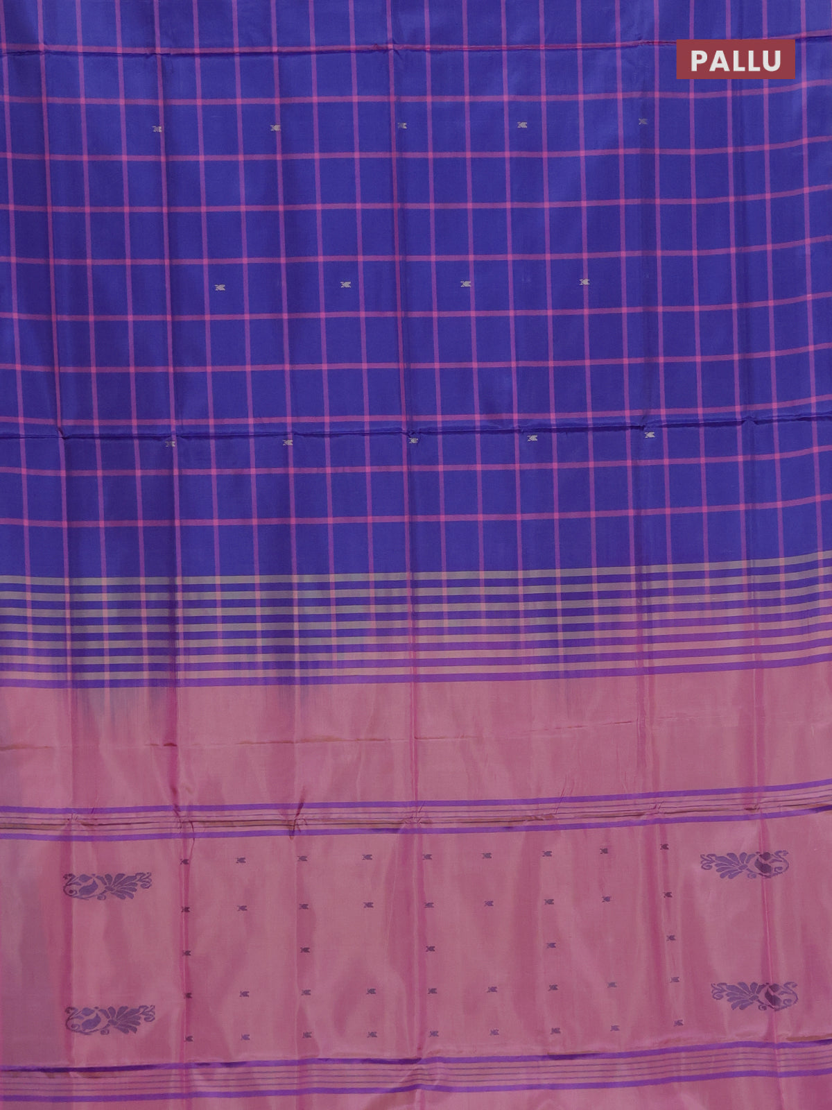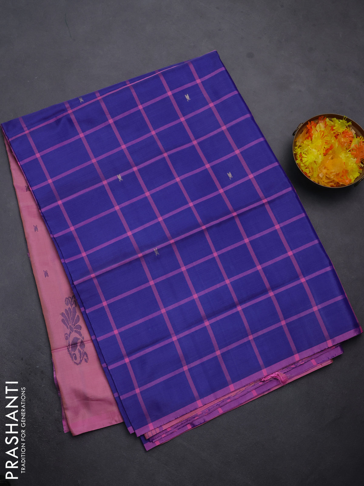 Banana pith saree blue and light pink with allover checked pattern and piping border