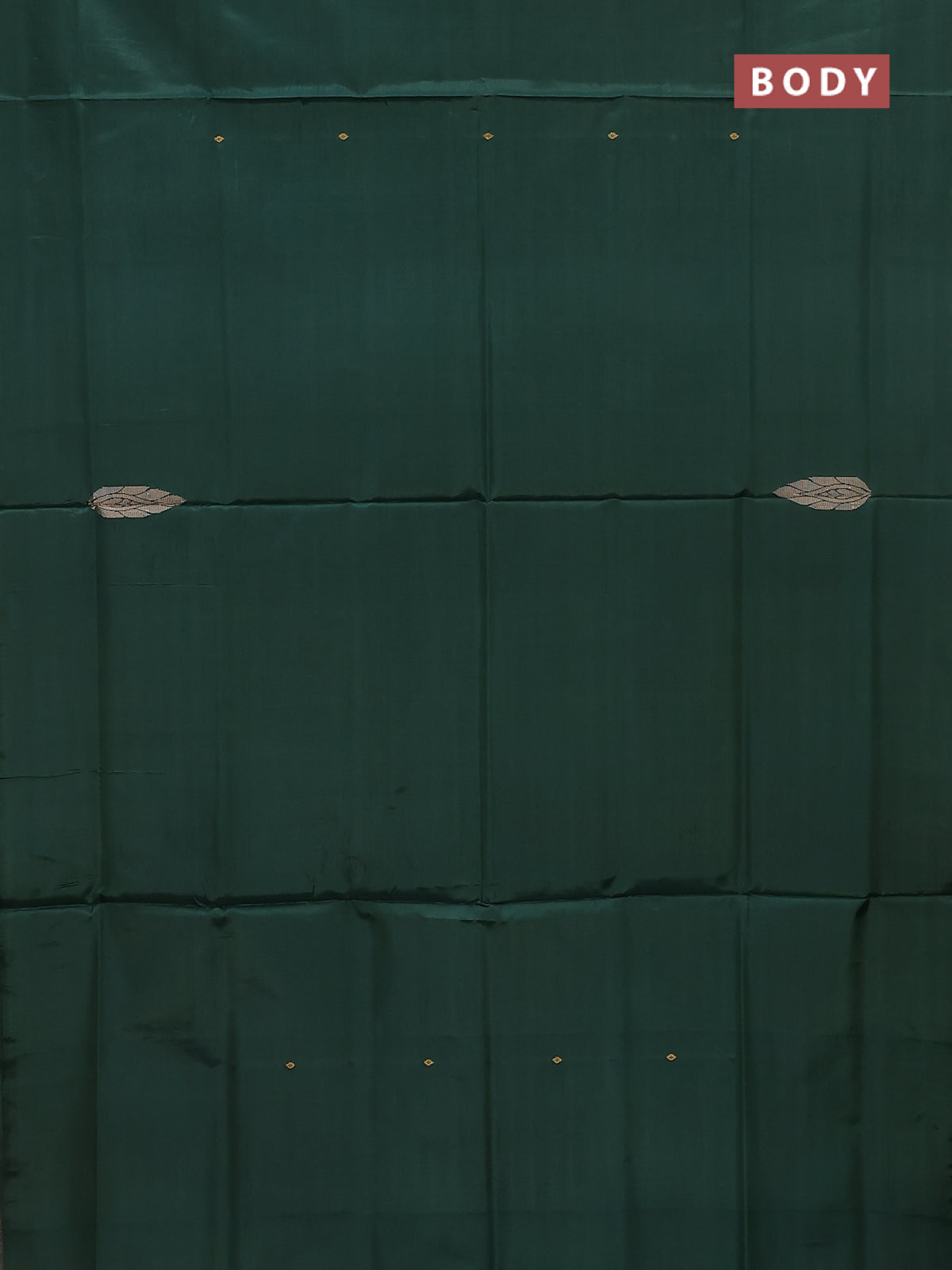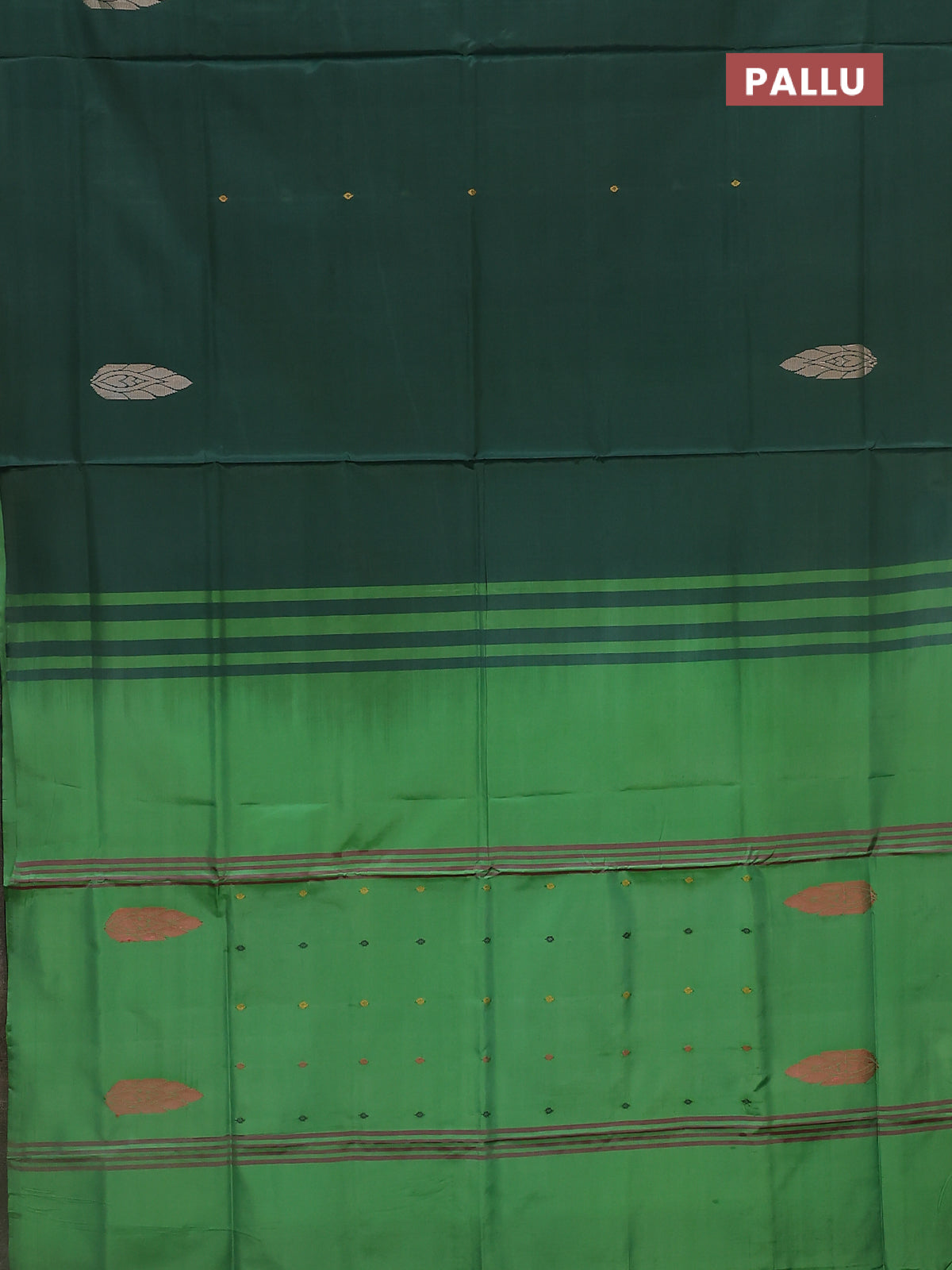 Banana pith saree bottle green and green with thread woven buttas in borderless style