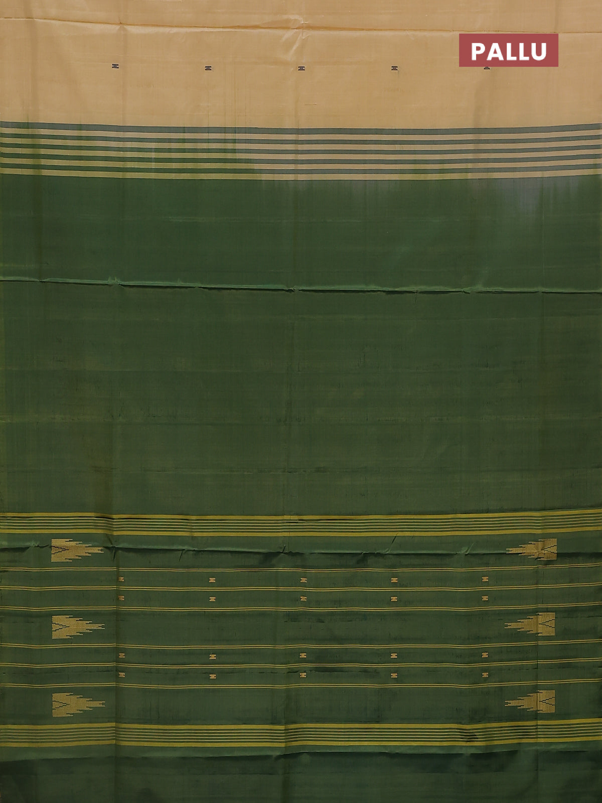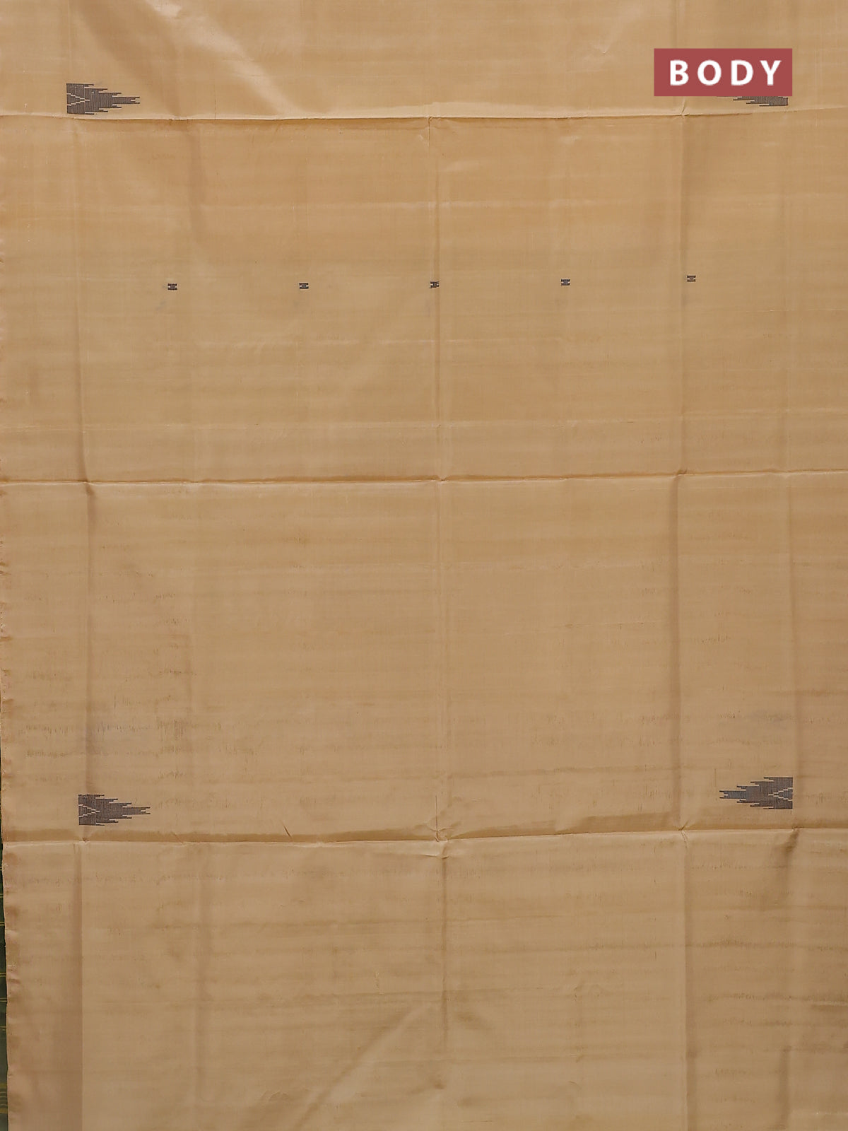 Banana pith saree cream and green with thread woven buttas in borderless style