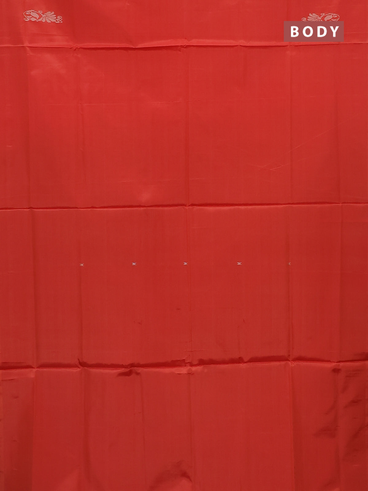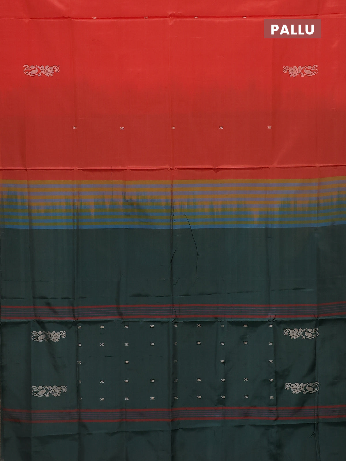Banana pith saree orange and bottle green with thread woven buttas in borderless style
