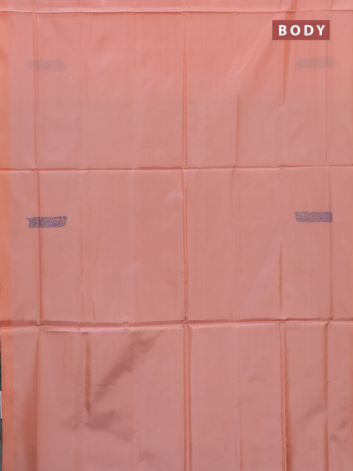 Banana pith saree pale orange and teal green with thread woven buttas in borderless style