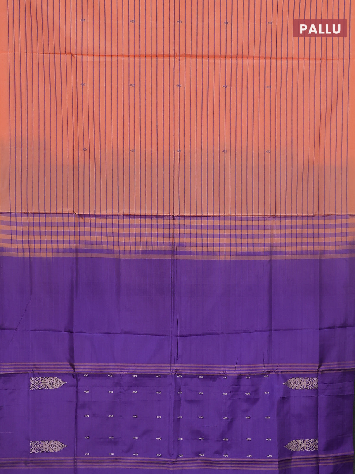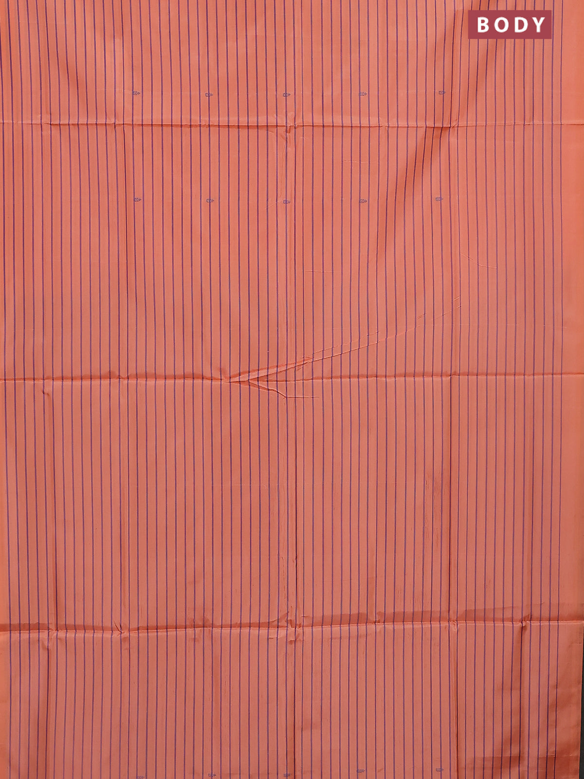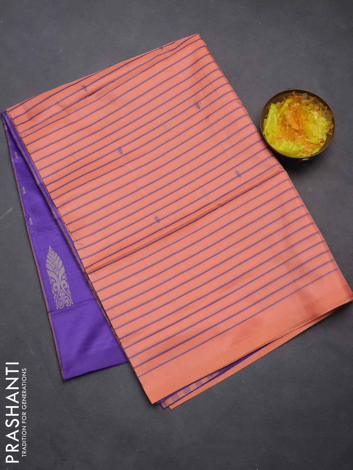 Banana pith saree peach orange and violet with allover stripe pattern in borderless style
