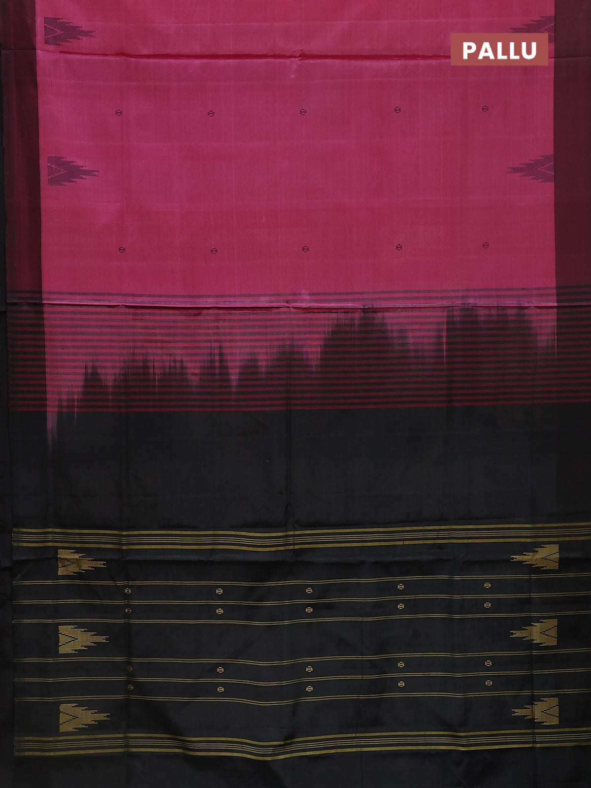 Banana pith saree pink and black with thread woven buttas and contrast border