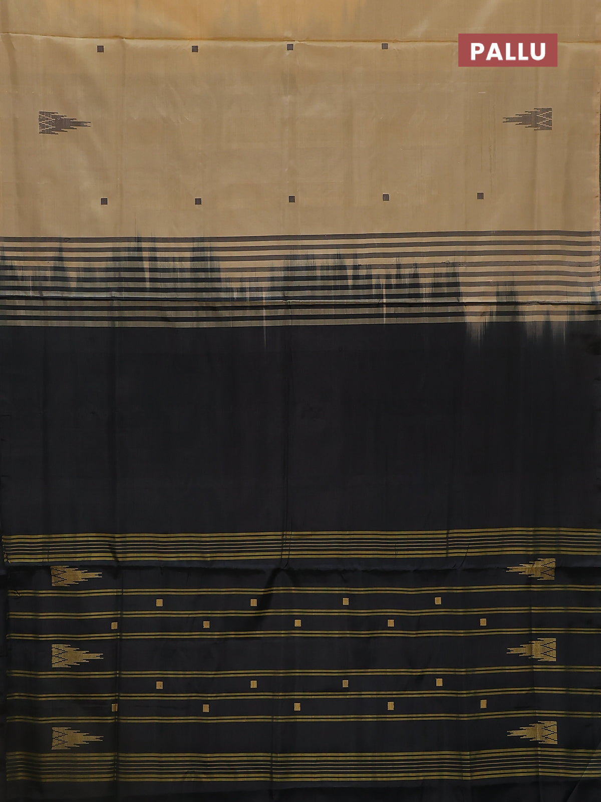 Banana pith saree sandal and black with thread woven buttas in borderless style