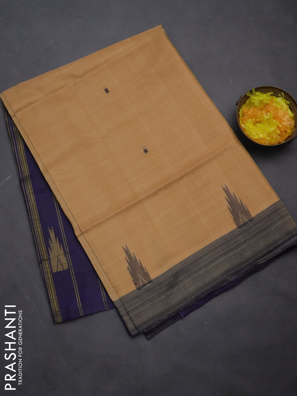 Banana pith saree sandal and blue with thread woven buttas and contrast border
