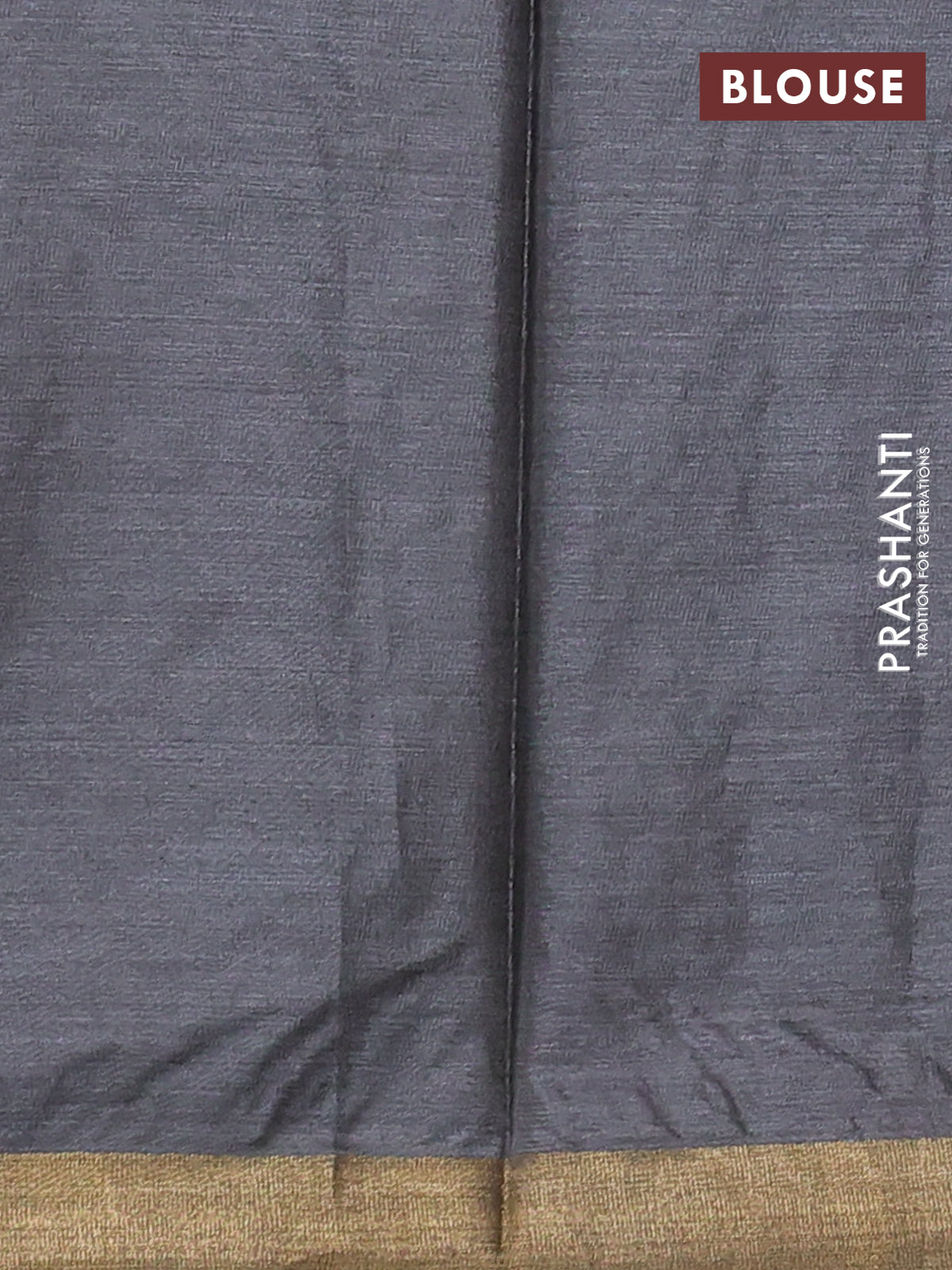 Banana silk saree grey with silver & gold zari woven buttas and zari woven border