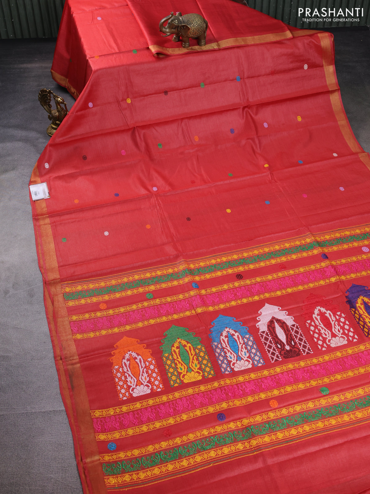 Banana silk saree red shade with thread woven buttas and zari woven border