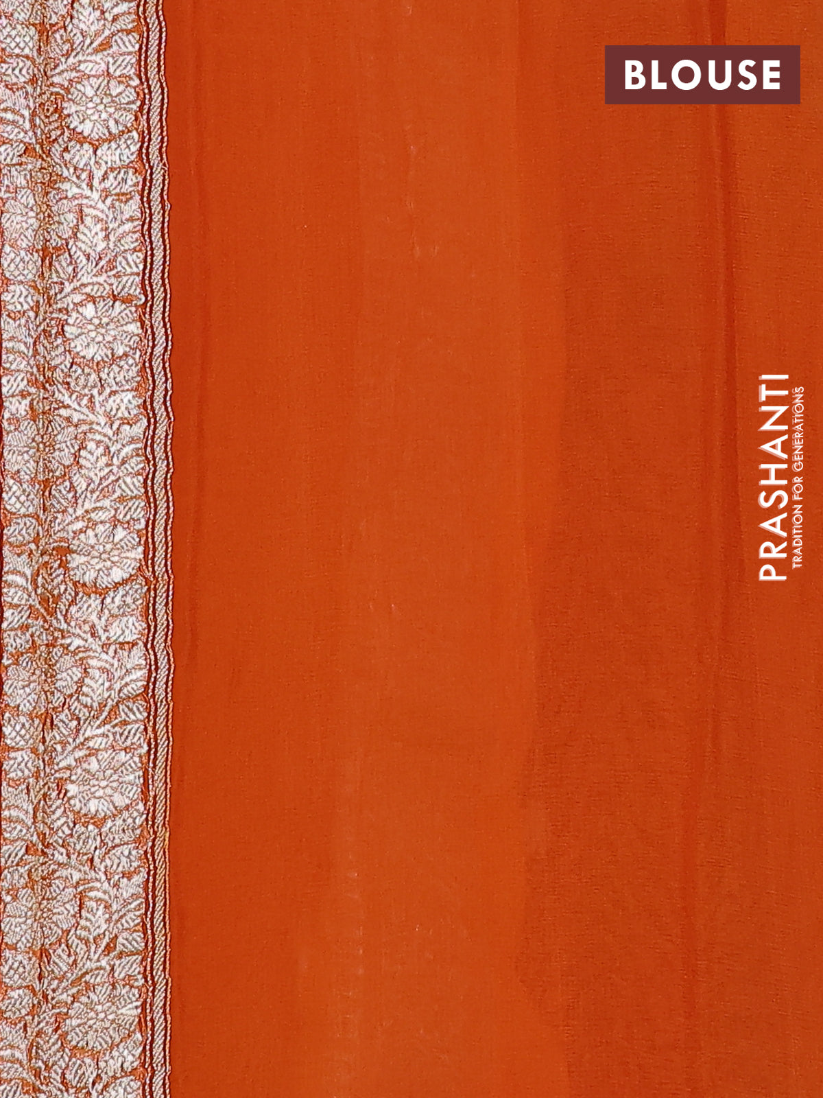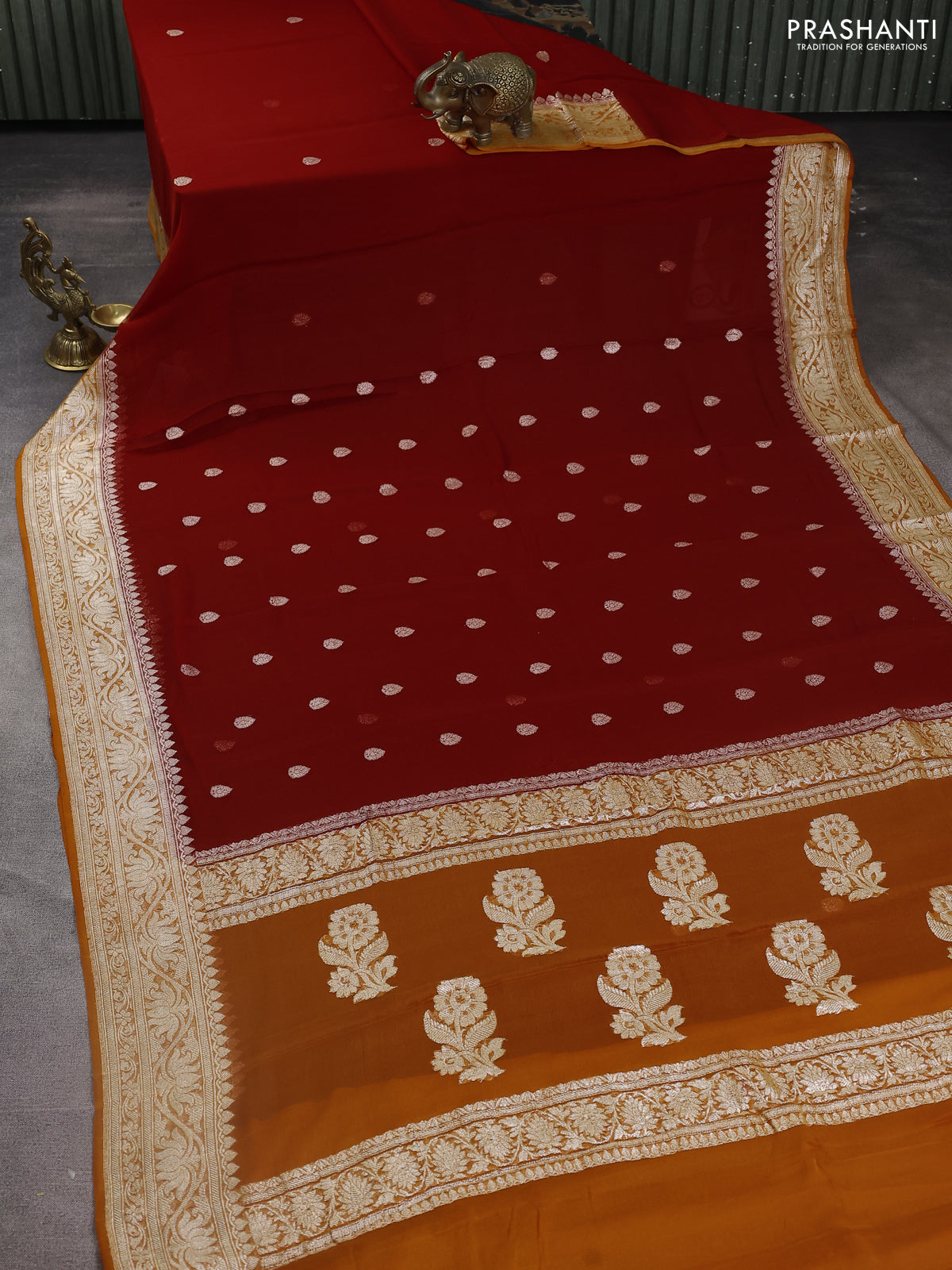 Banarasi chiffon silk saree kumkum red and orange with silver zari woven buttas and silver zari woven floral border