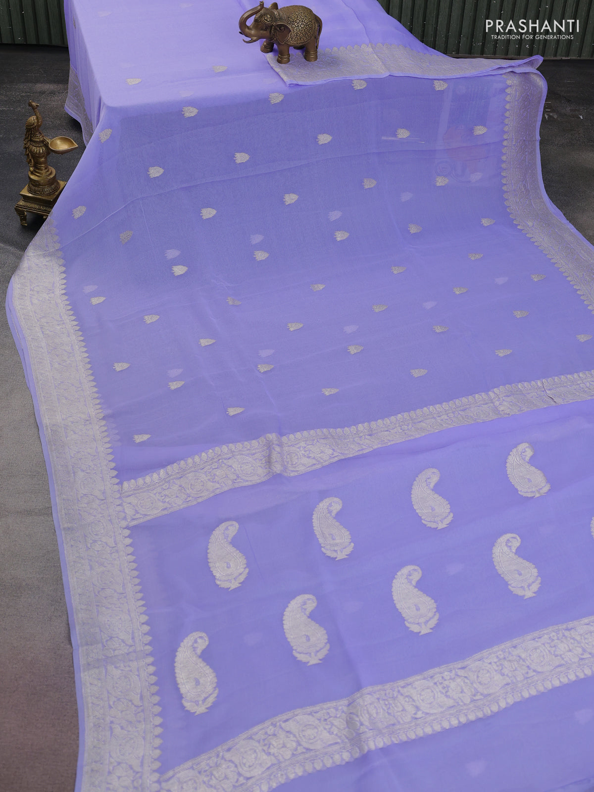 Banarasi chiffon silk saree lavender shade with silver zari woven buttas and silver zari woven border