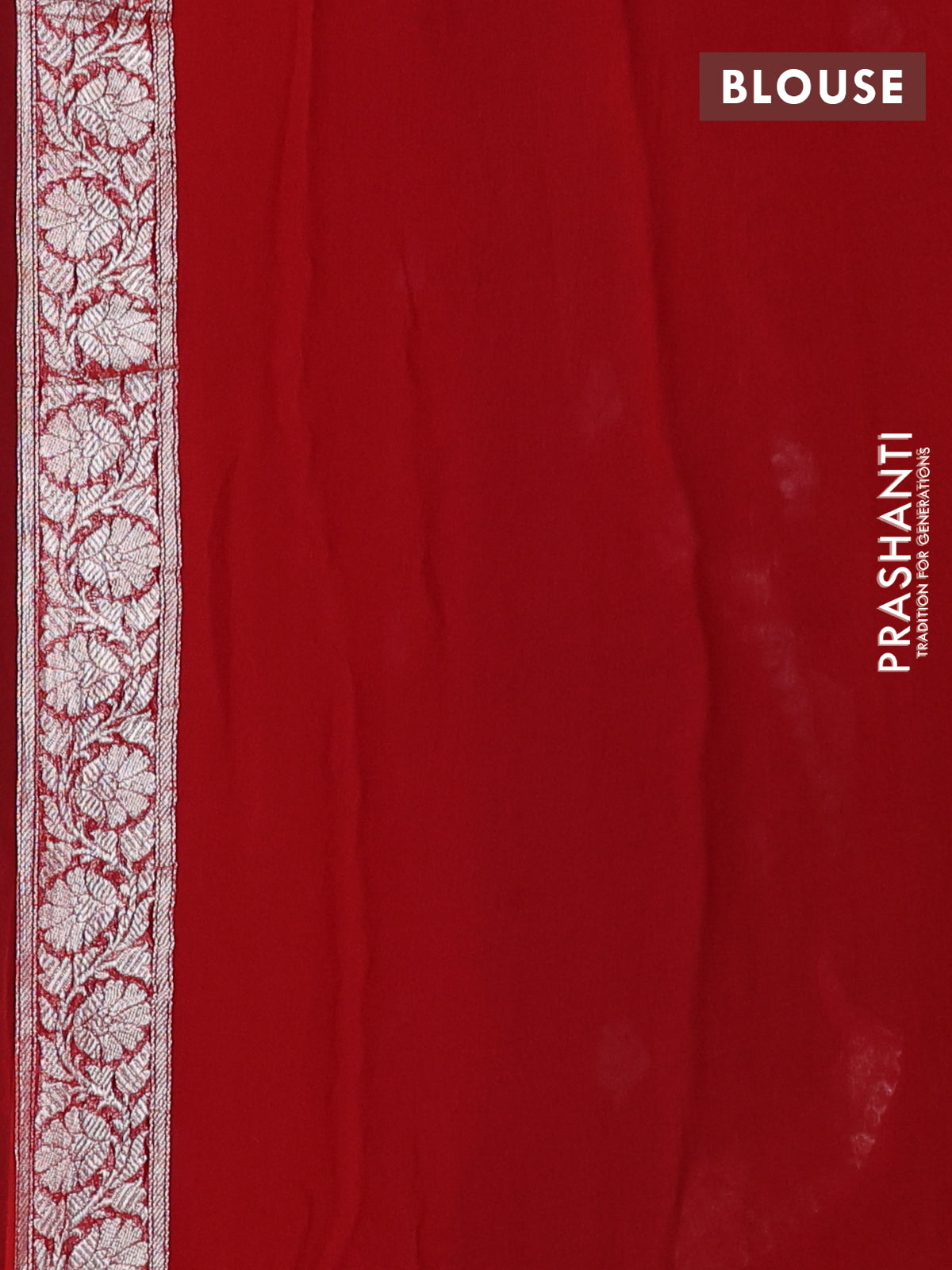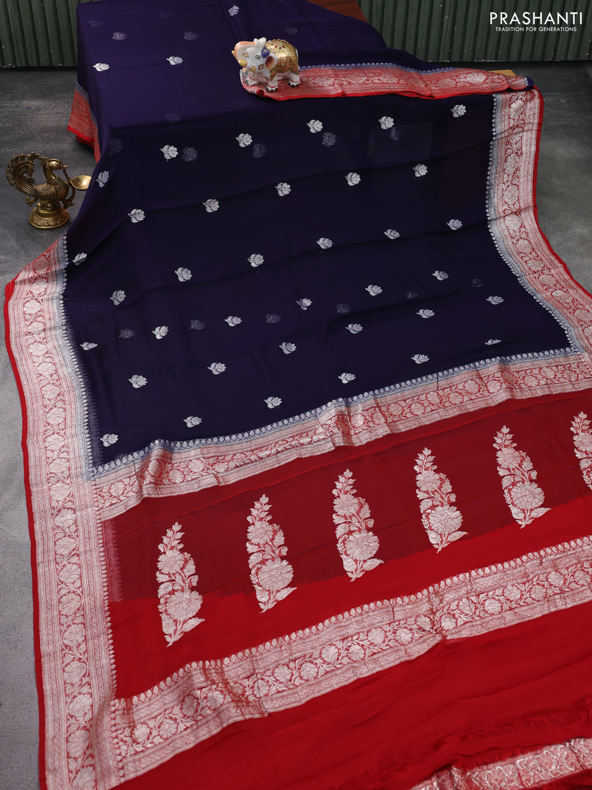 Banarasi chiffon silk saree navy blue and red with silver zari woven buttas and silver zari woven floral border