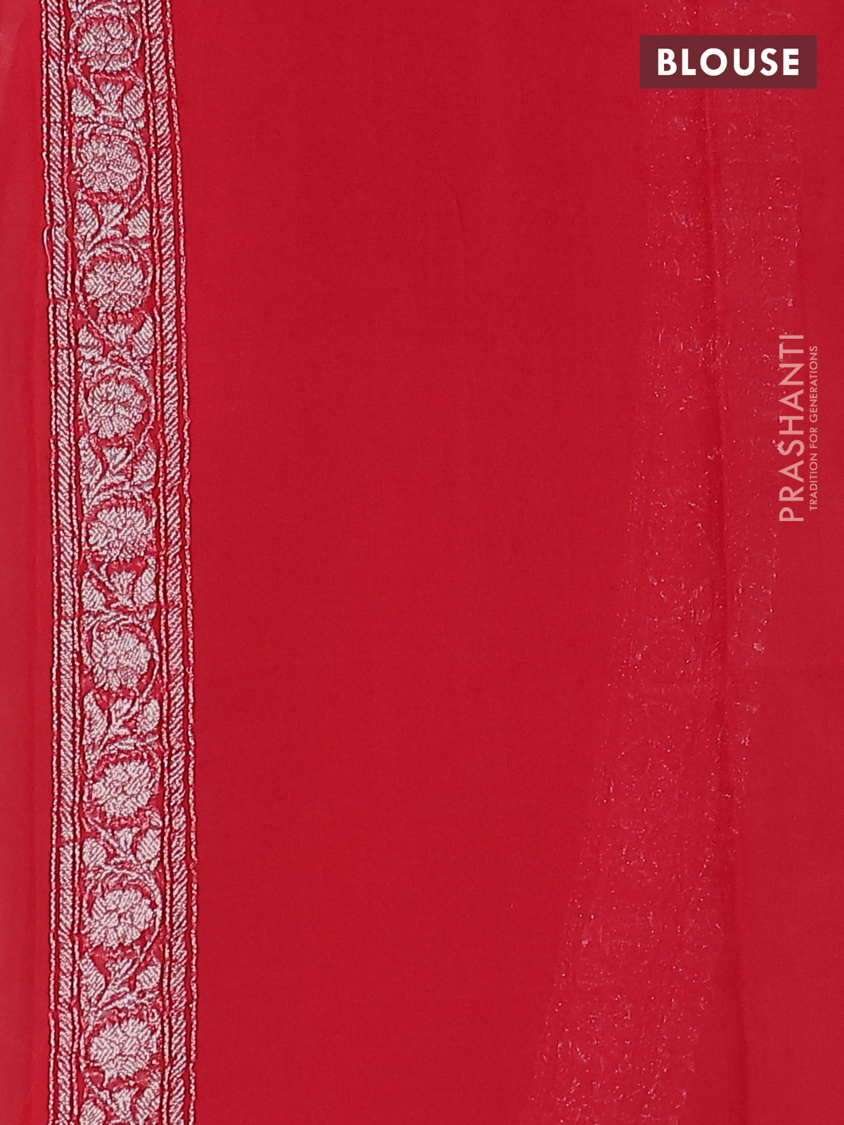 Banarasi chiffon silk saree pastel peach and red with silver zari woven buttas and silver zari woven border