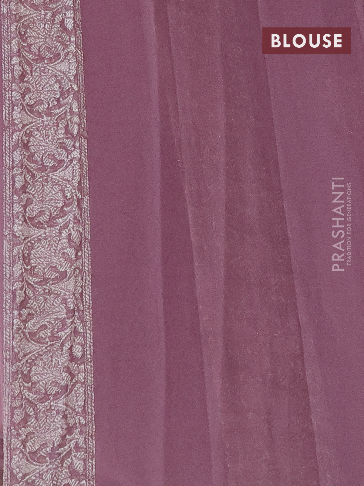 Banarasi chiffon silk saree pastel pink with silver zari woven buttas and silver zari woven border