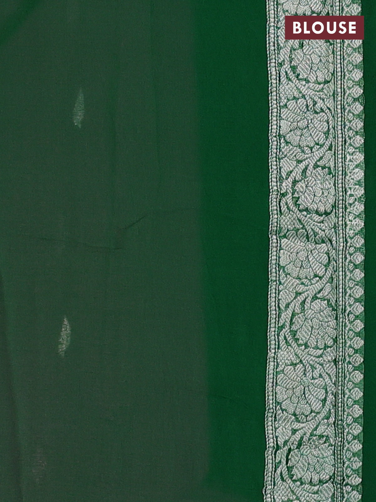 Banarasi chiffon silk saree purple and green with silver zari woven buttas and floral silver zari woven border