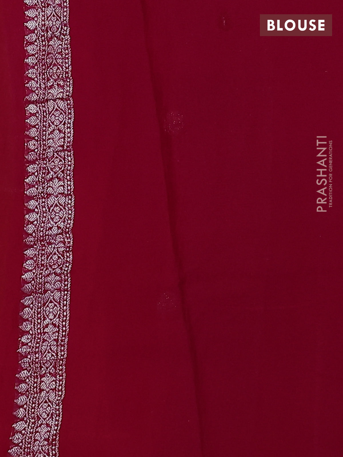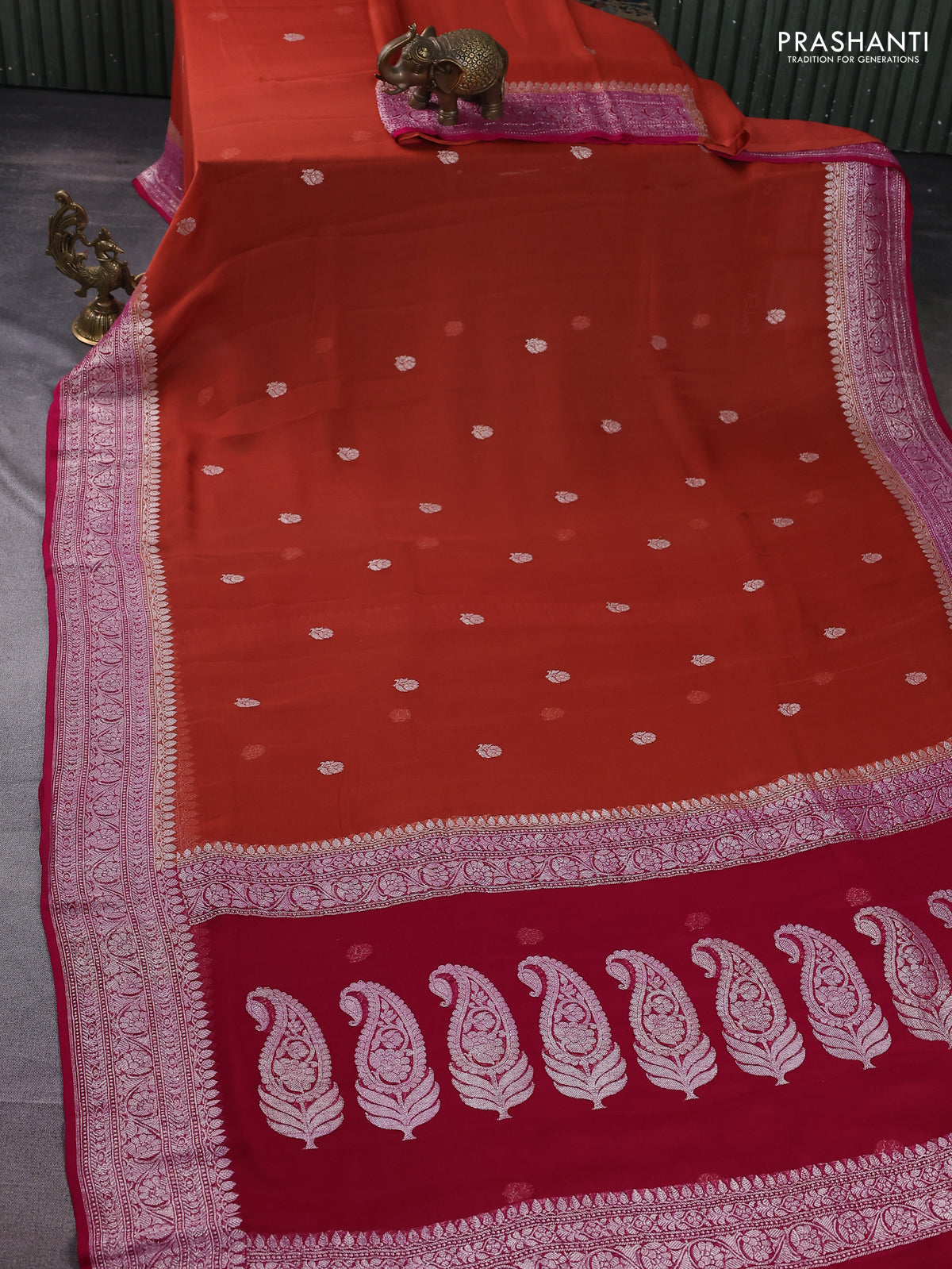 Banarasi chiffon silk saree rust shade and magenta pink with silver zari woven buttas and floral silver zari woven border