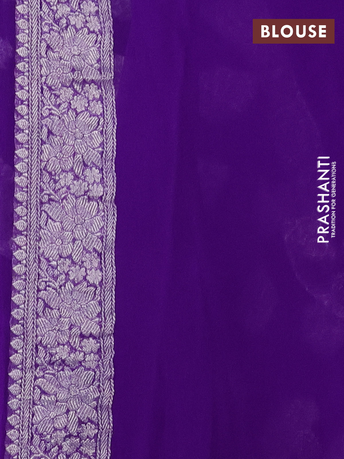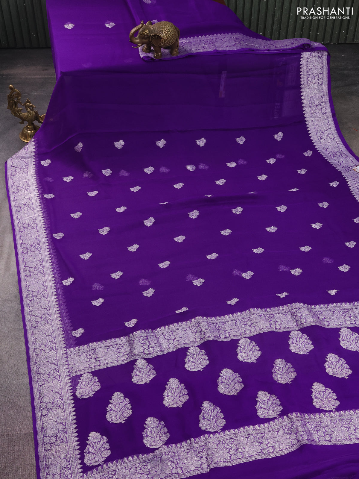 Banarasi chiffon silk saree violet with silver zari woven buttas and silver zari woven border