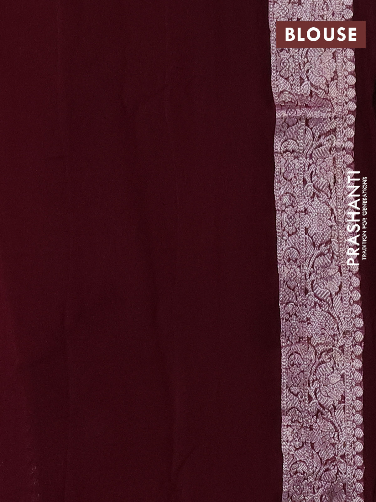 Banarasi chiffon silk saree wine shade with silver zari woven buttas and silver zari woven border
