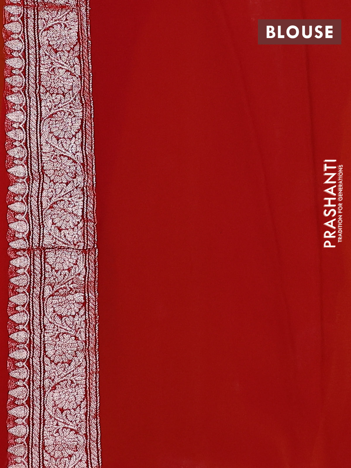 Banarasi chiffon silk saree yellow and red with silver zari woven buttas and silver zari woven floral border