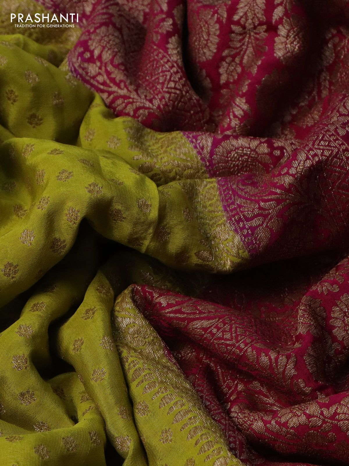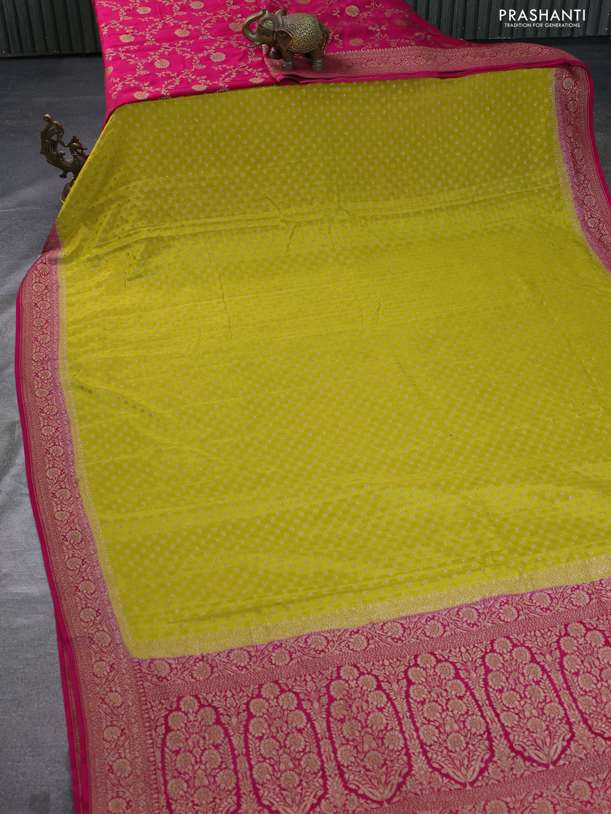 Banarasi crepe partly saree lime yellow and pink with allover thread & zari woven butta weaves and woven border