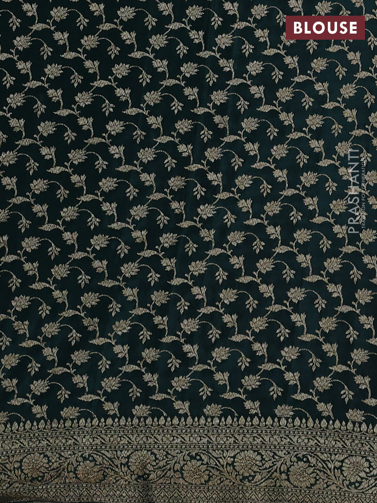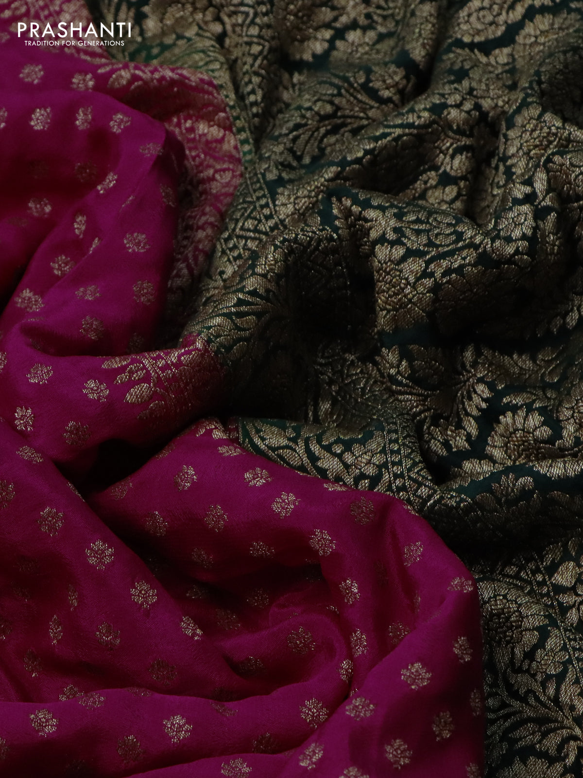 Banarasi crepe partly saree pink and dark green with allover thread & zari woven butta weaves and woven border
