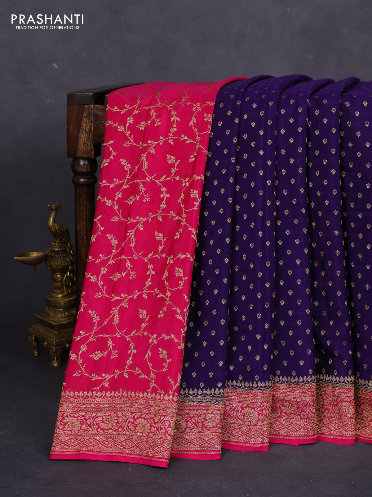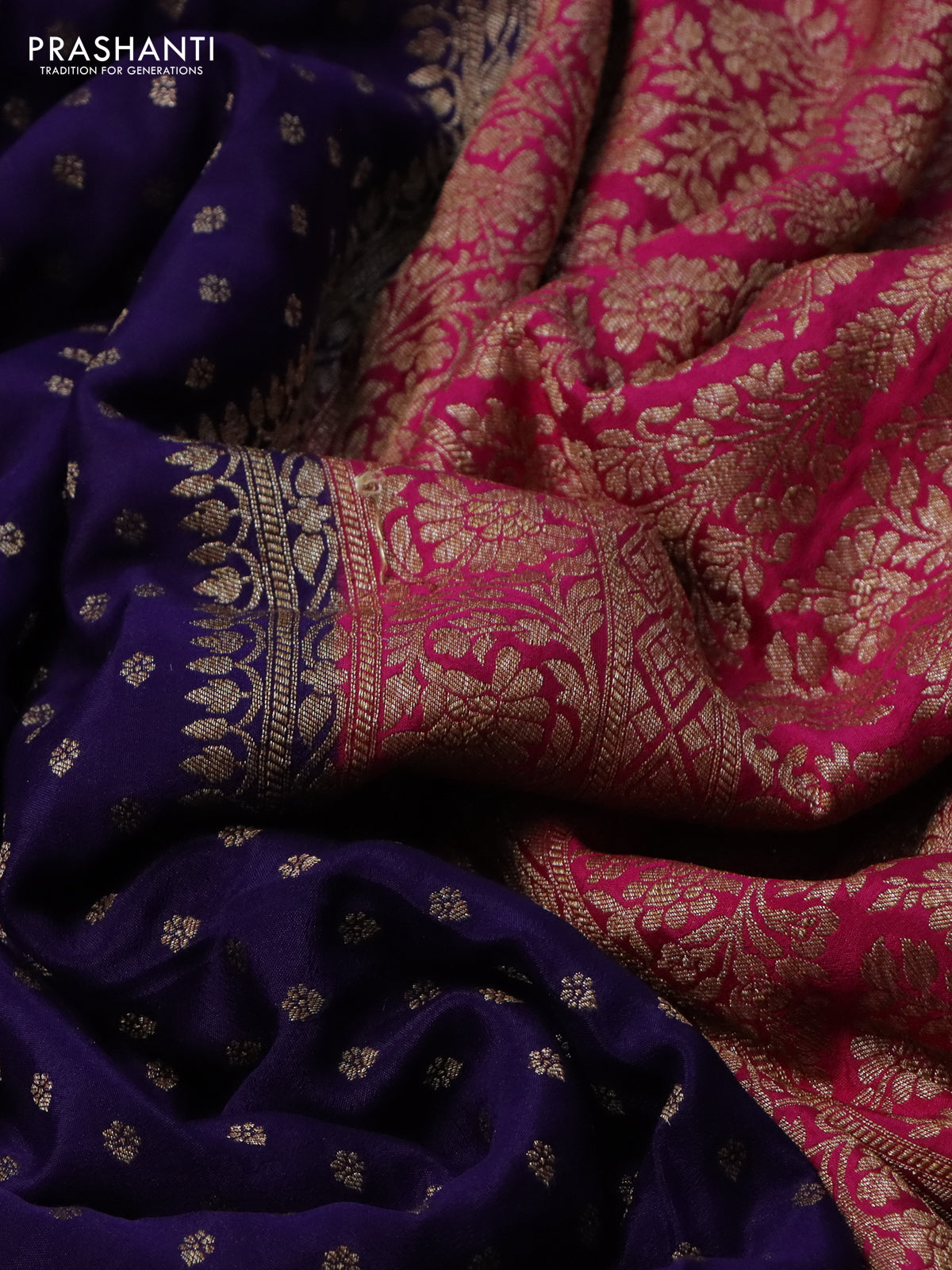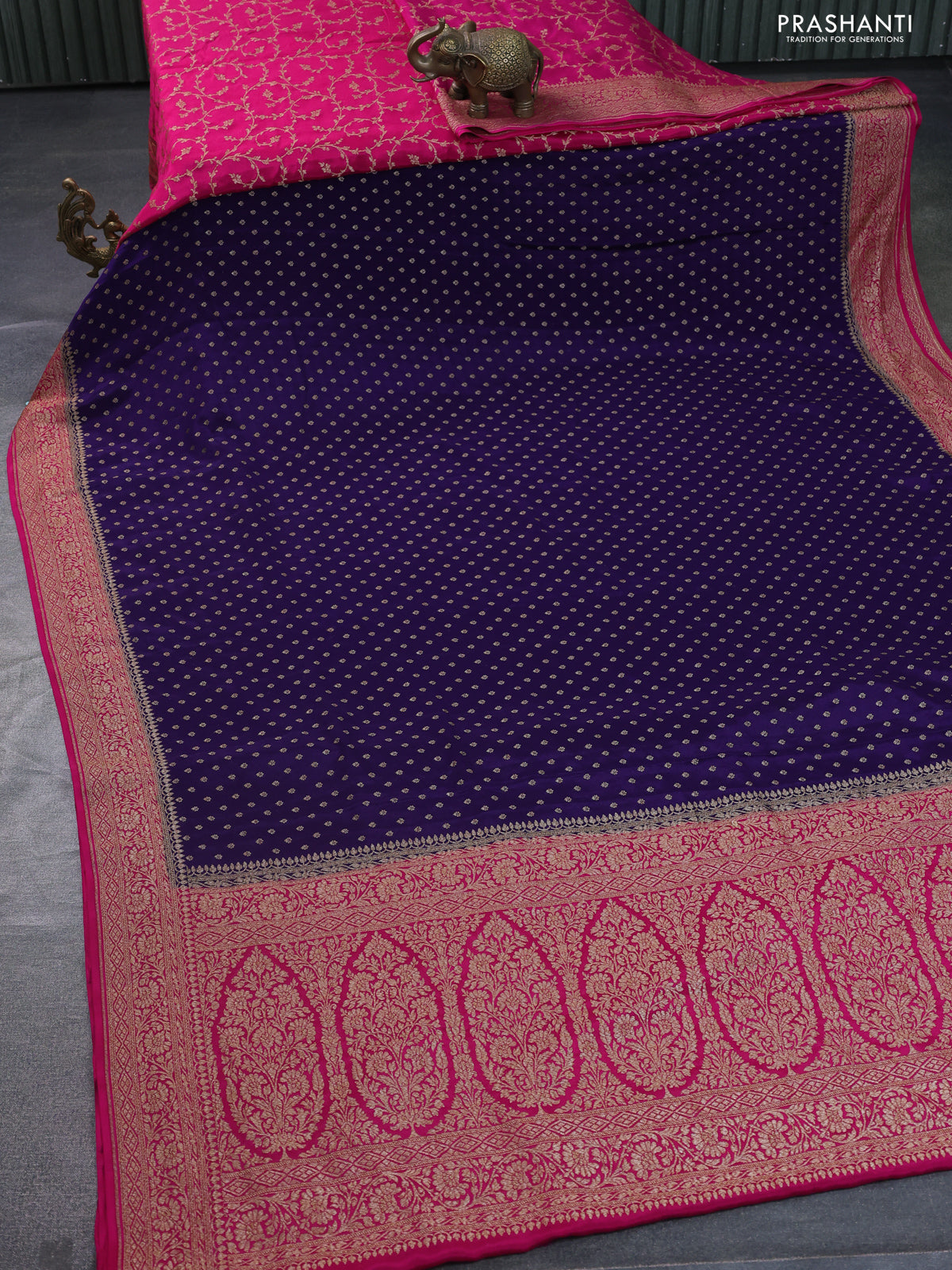 Banarasi crepe partly saree violet and pink with allover thread & zari woven butta weaves and woven border