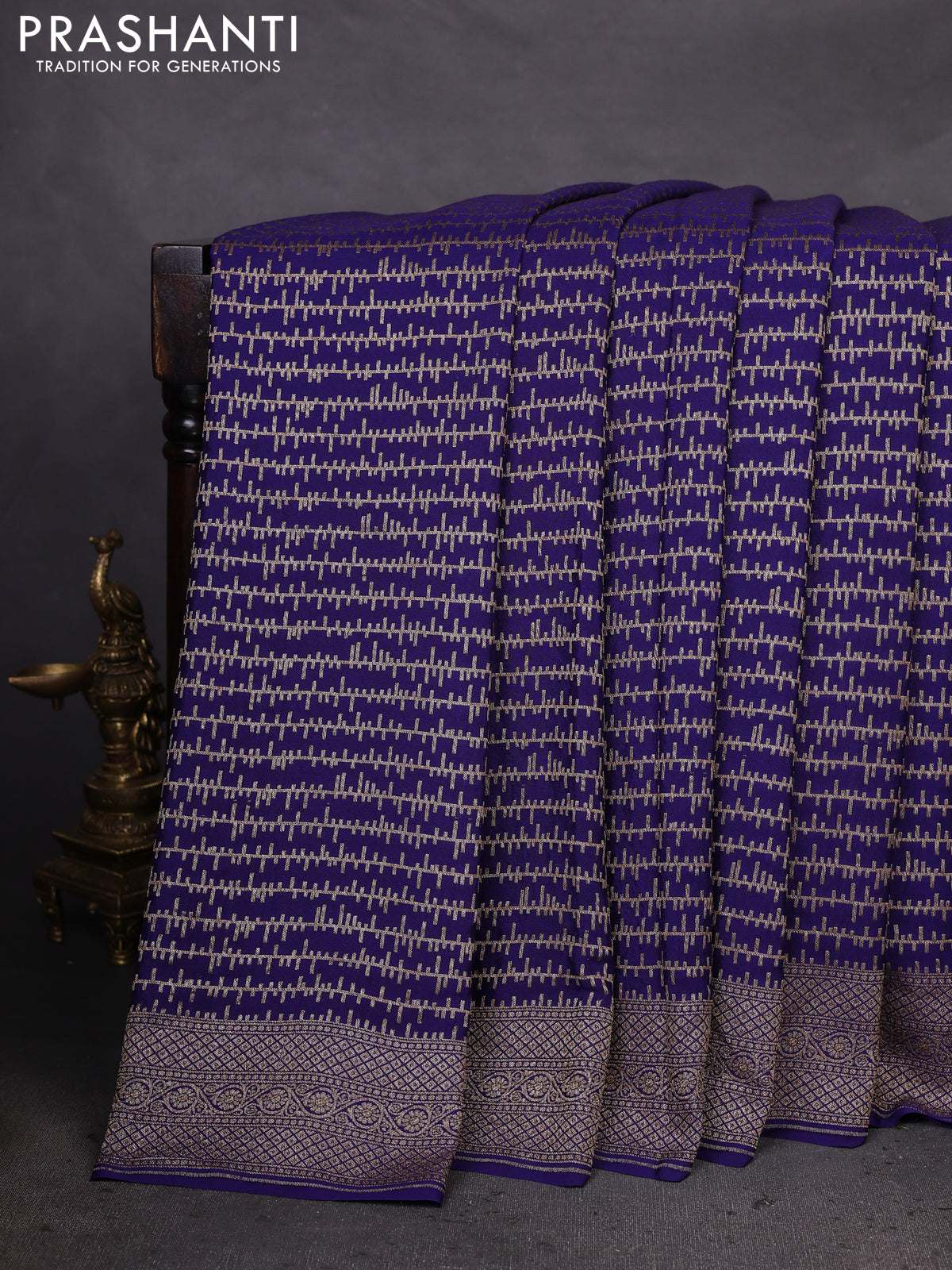 Banarasi crepe saree blue with allover geometric weaves and woven border