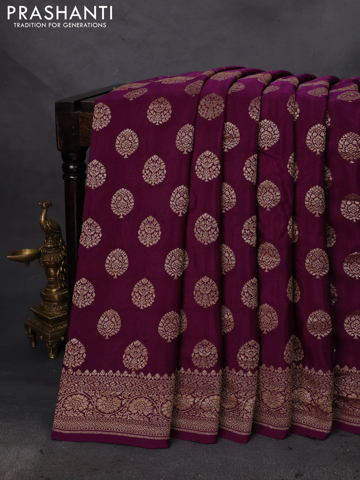 Pure Banarasi Crepe sarees featuring a fluid drape and graceful sheen, offering a perfect blend of heritage craftsmanship and modern elegance. Curated by Prashanti for effortless luxury and timeless style.