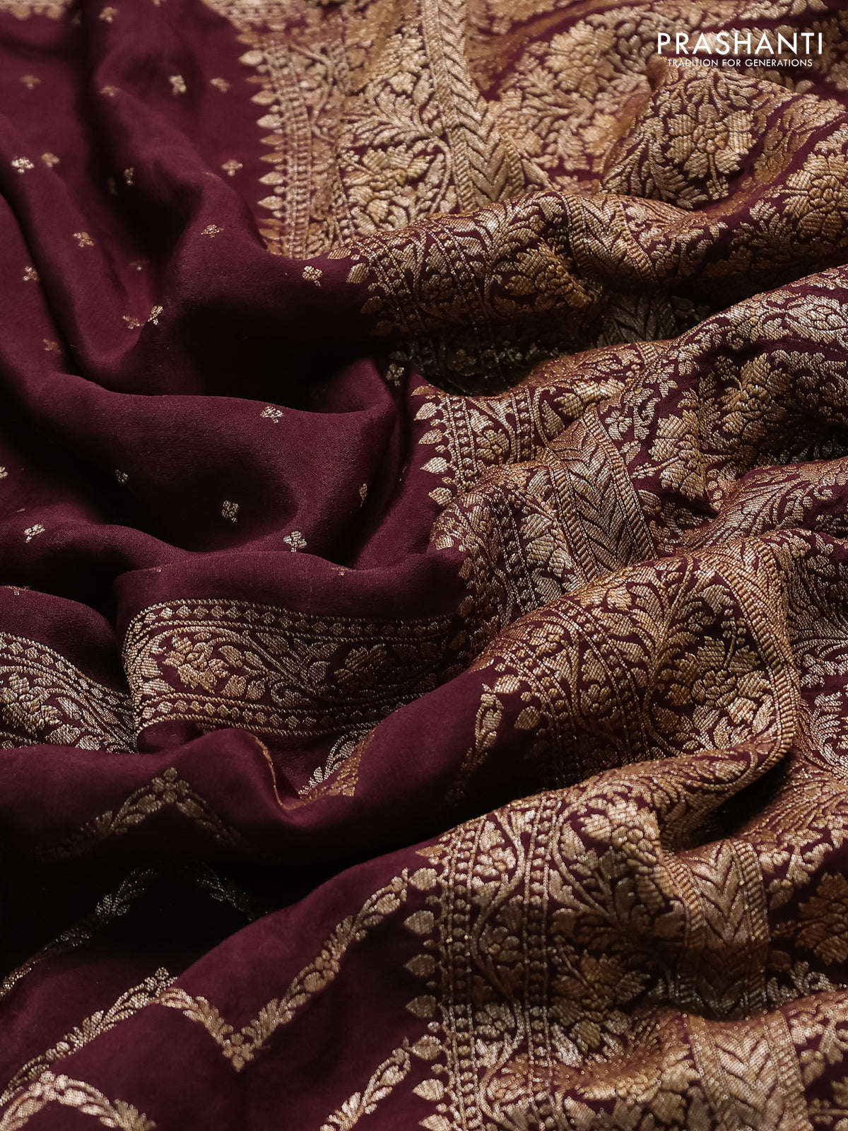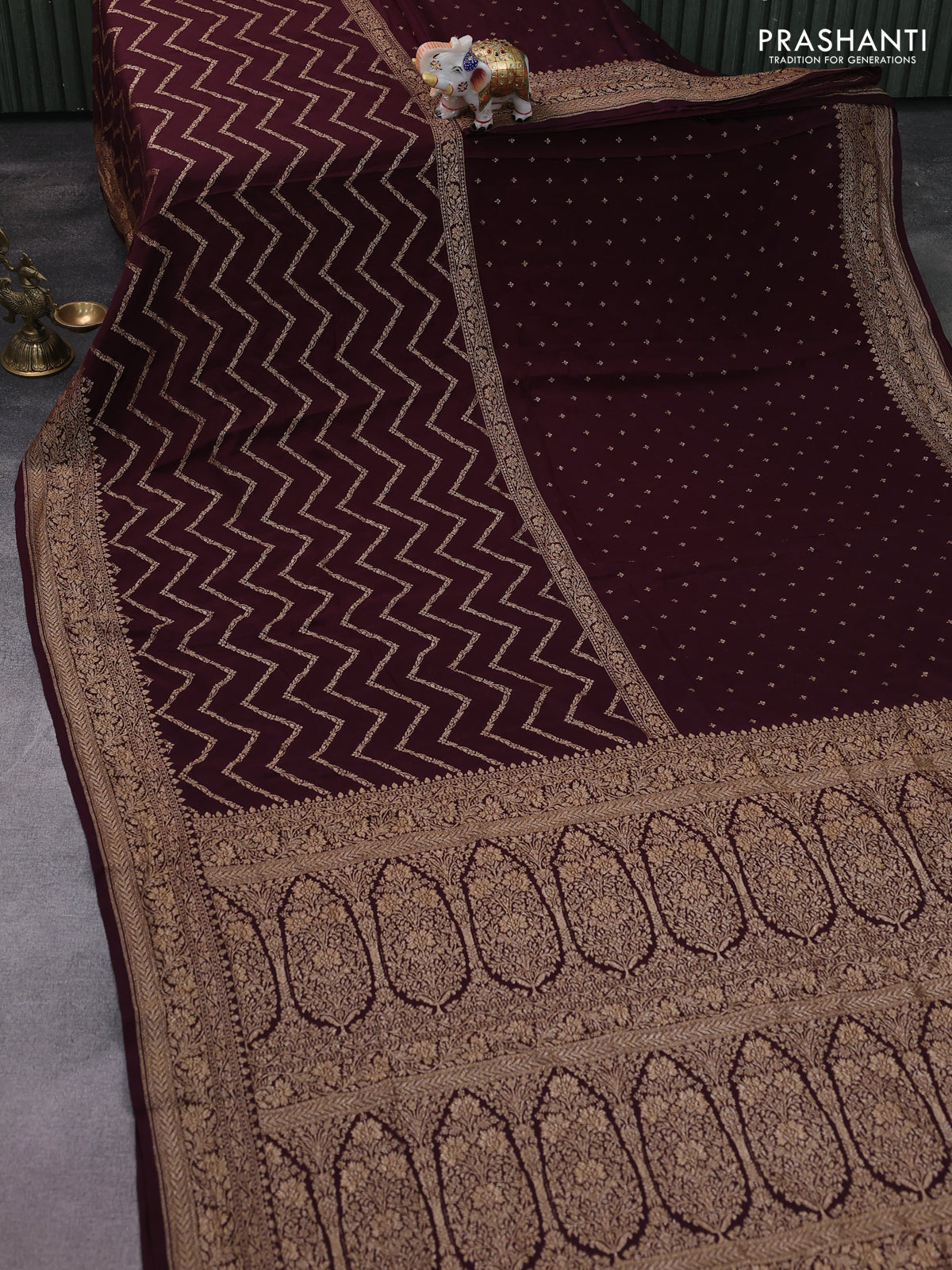 Banarasi crepe saree deep wine shade with half & half style and woven border