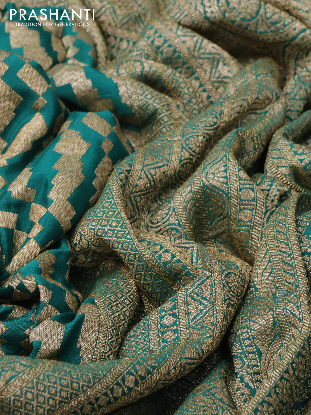 Banarasi crepe saree green and peacock blue with allover geometric zari weaves and woven border