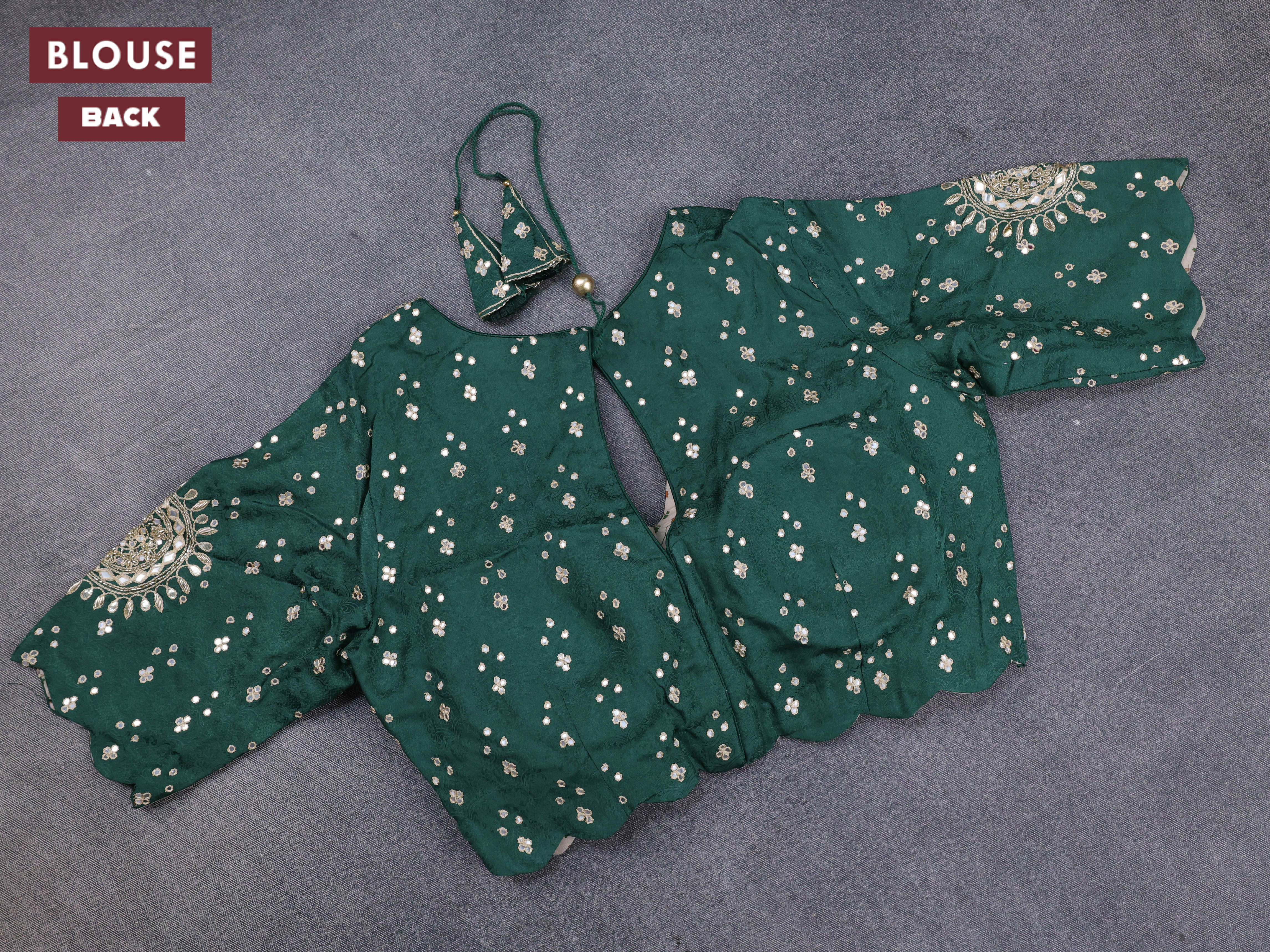 Banarasi crepe saree green with stripes pattern and mirror work & banarasi style border