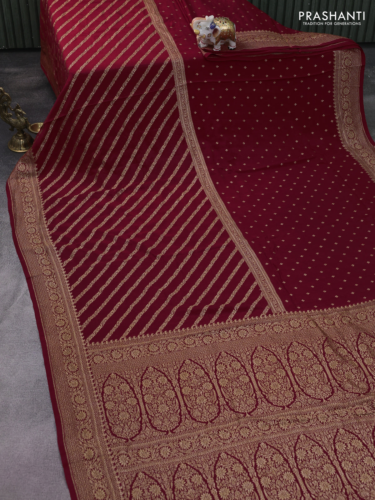 Pure Banarasi Crepe sarees featuring a fluid drape and graceful sheen, offering a perfect blend of heritage craftsmanship and modern elegance. Curated by Prashanti for effortless luxury and timeless style.