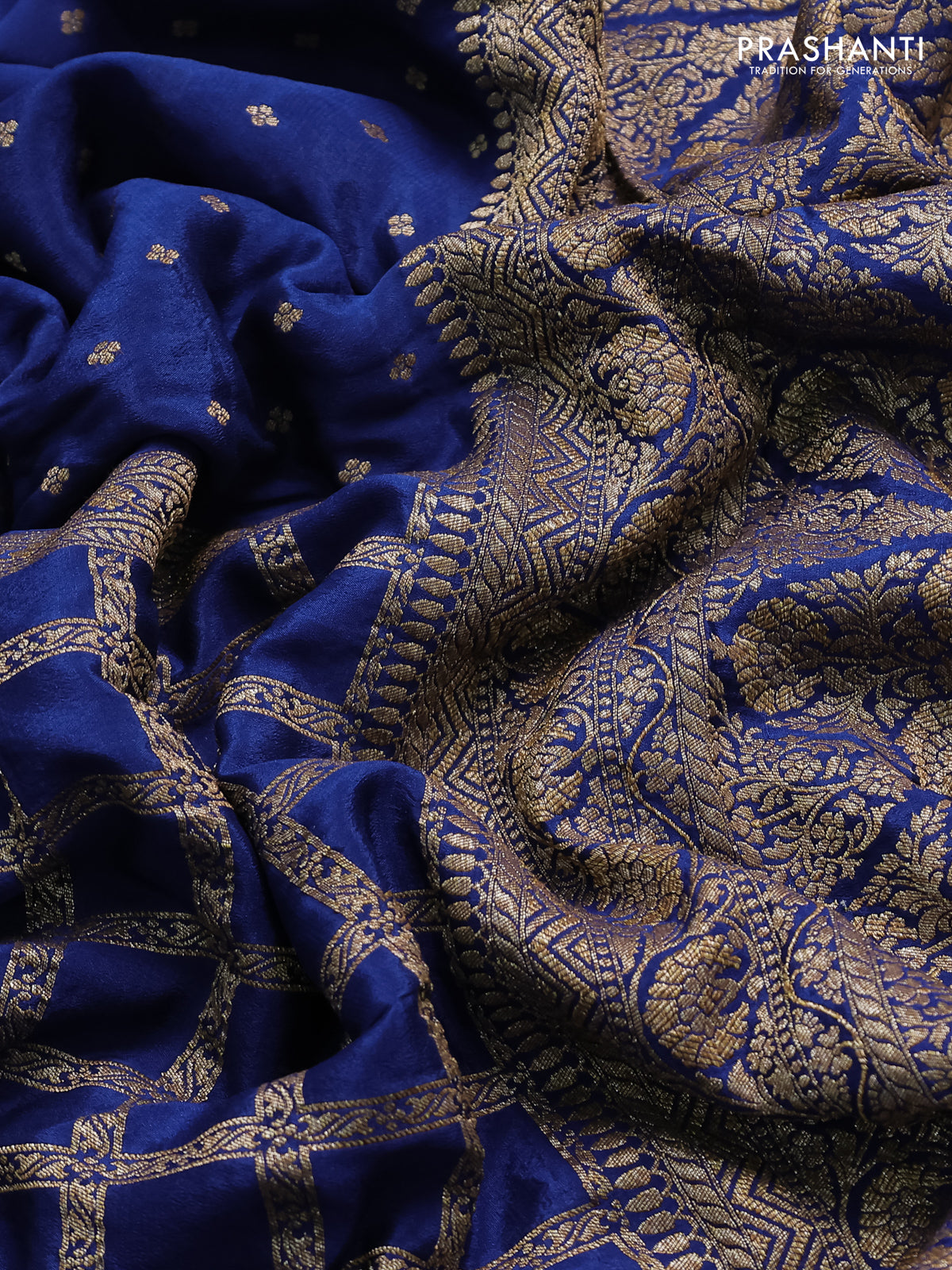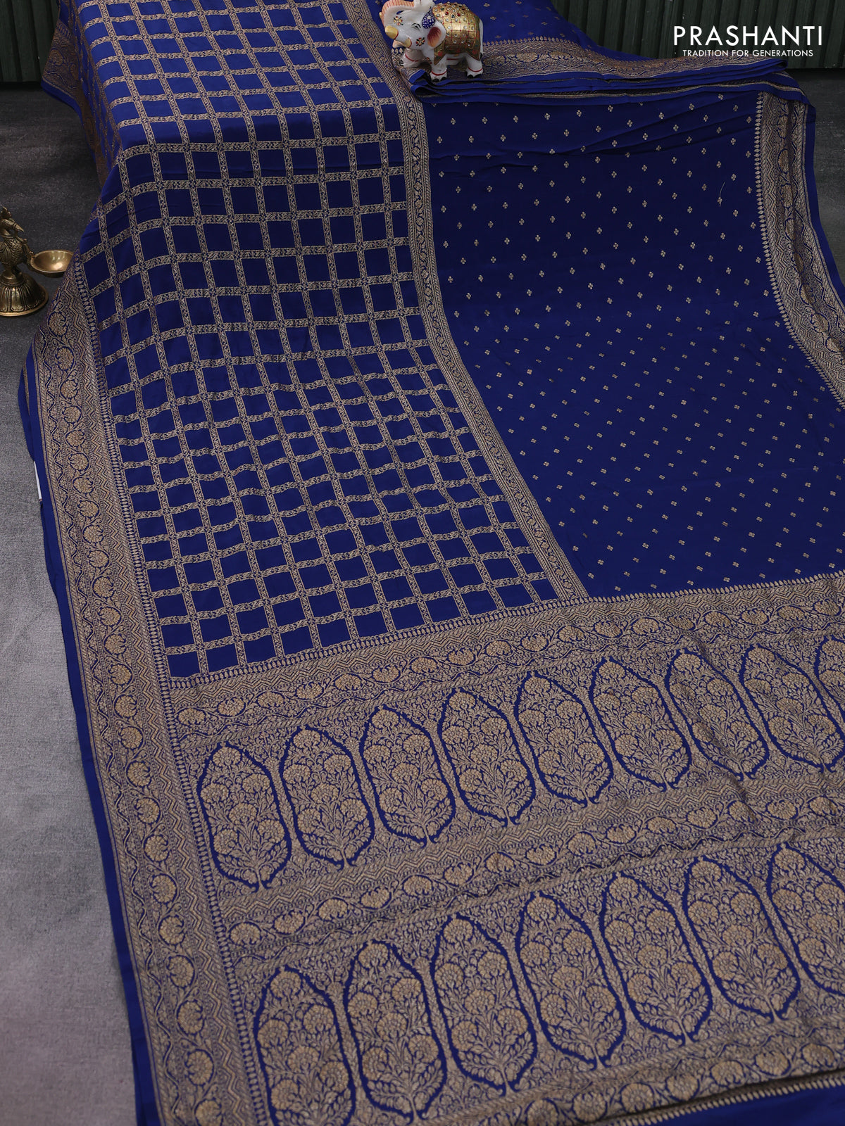 Banarasi crepe saree peacock blue with half & half style and woven border