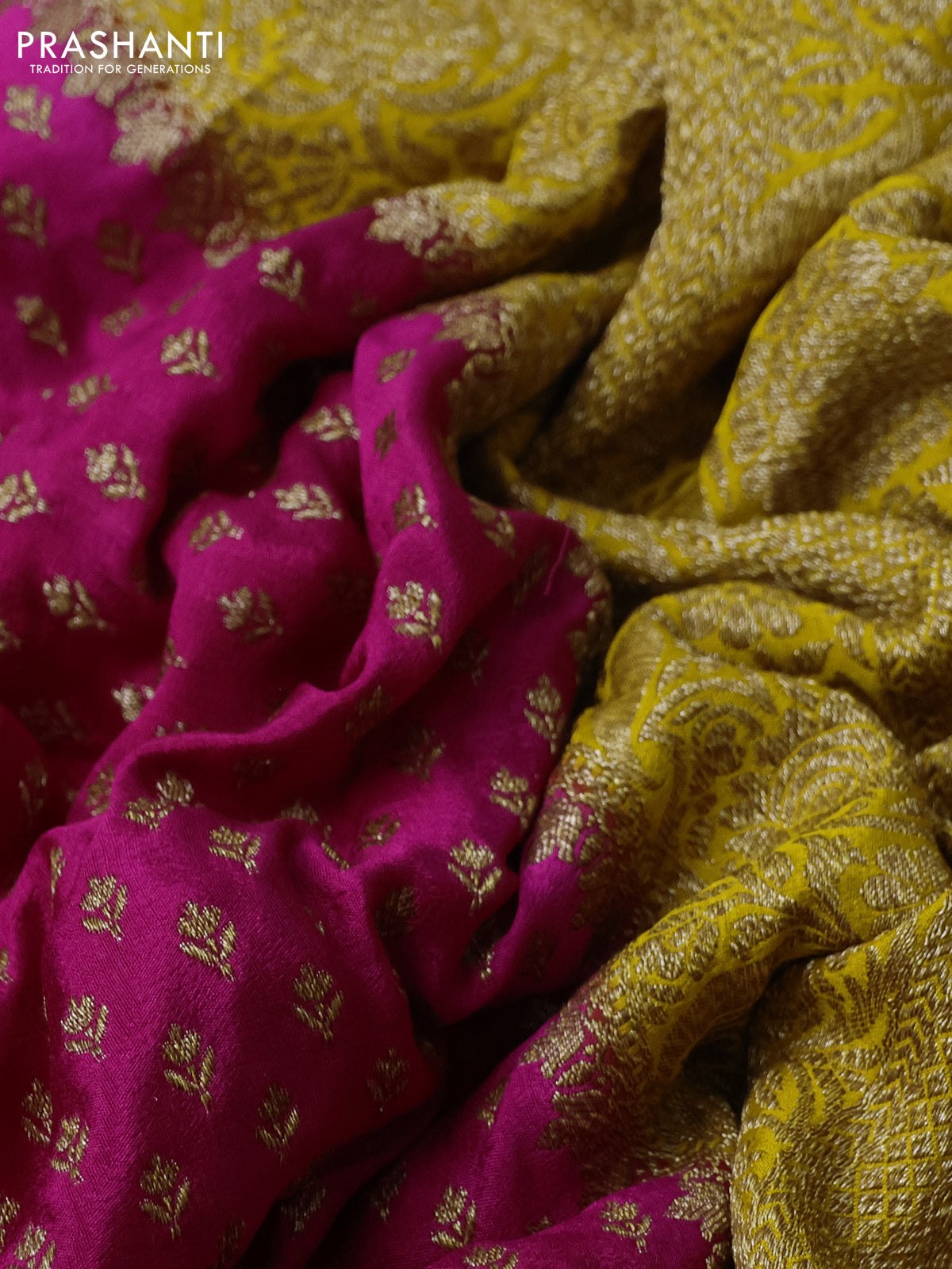 Banarasi crepe saree pink and yellow with allover thread & zari weaves and woven border