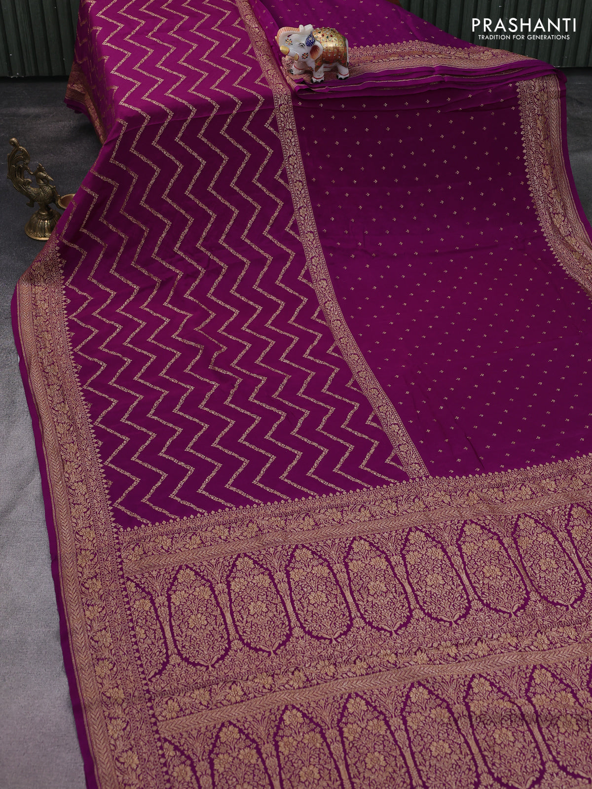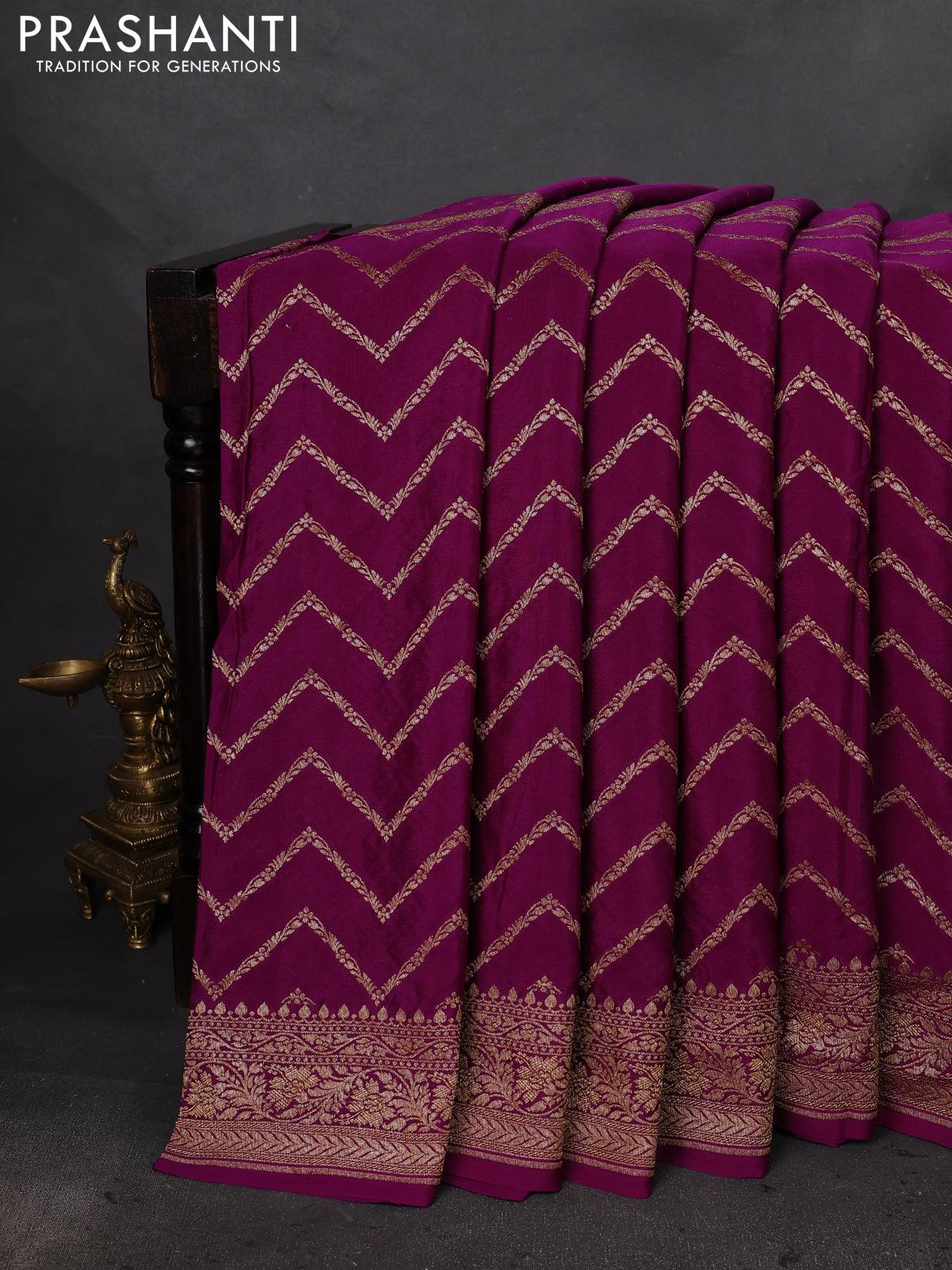 Pure Banarasi Crepe sarees featuring a fluid drape and graceful sheen, offering a perfect blend of heritage craftsmanship and modern elegance. Curated by Prashanti for effortless luxury and timeless style.