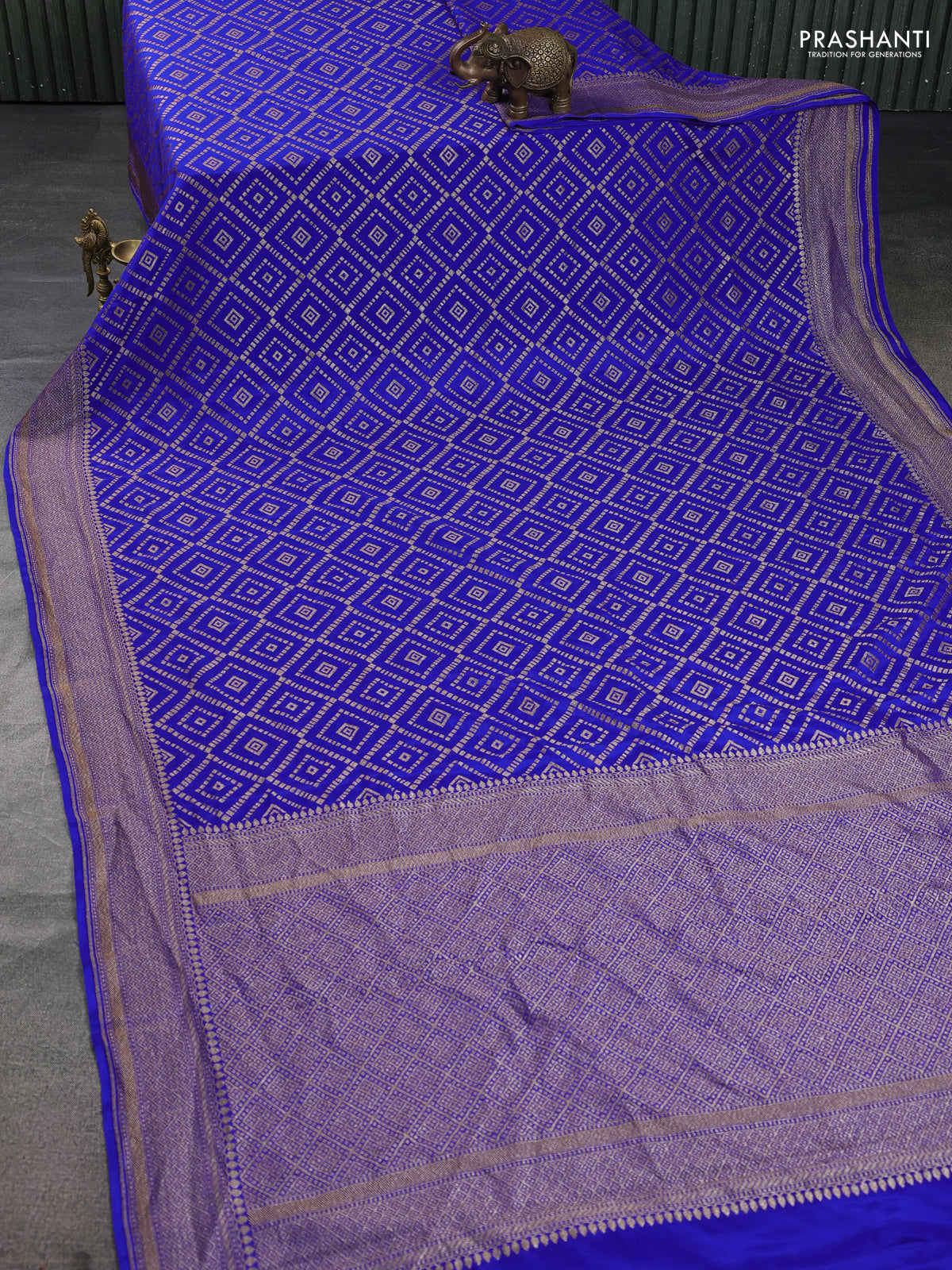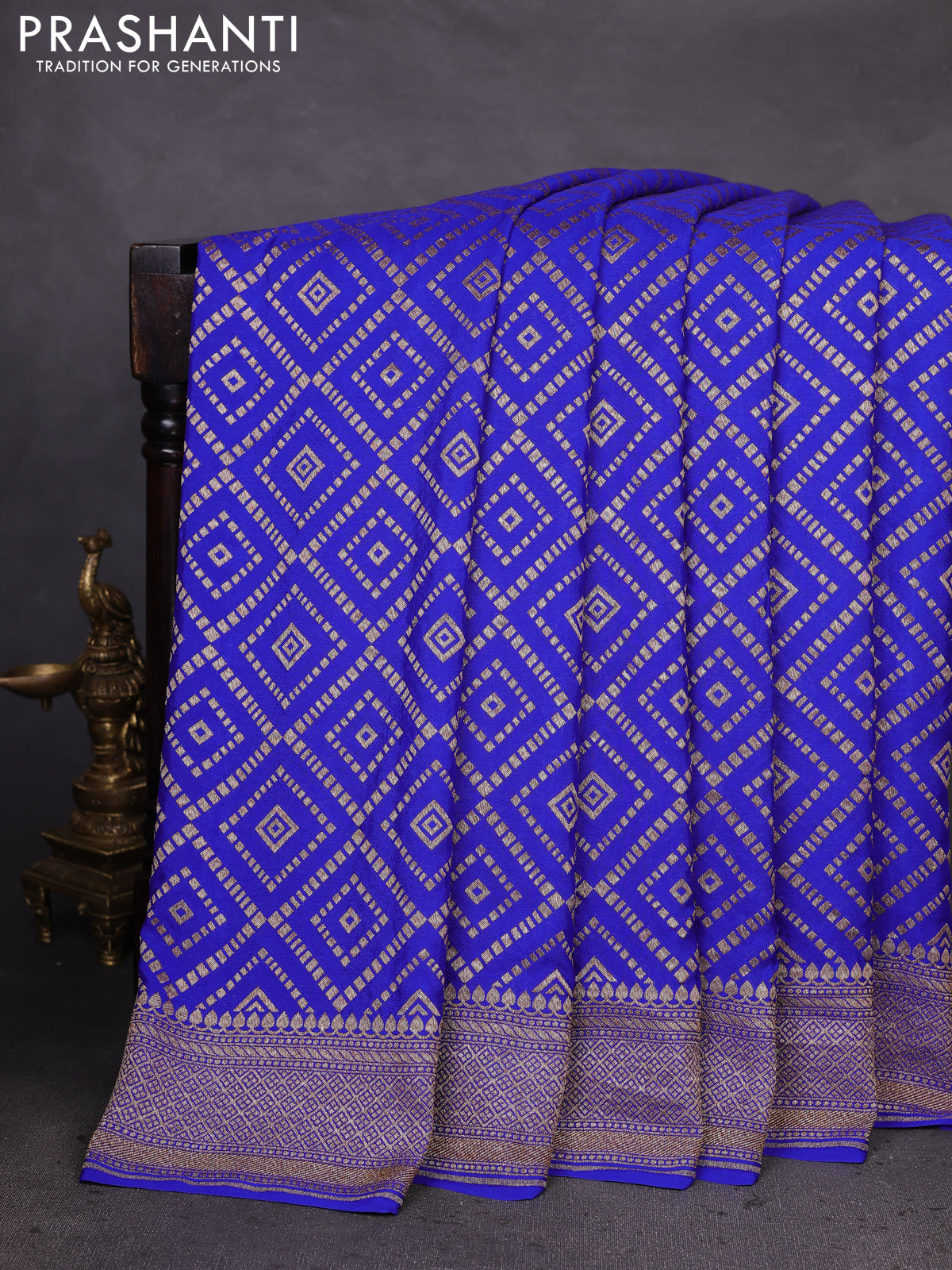 Banarasi crepe saree blue with allover geometric weaves and woven border