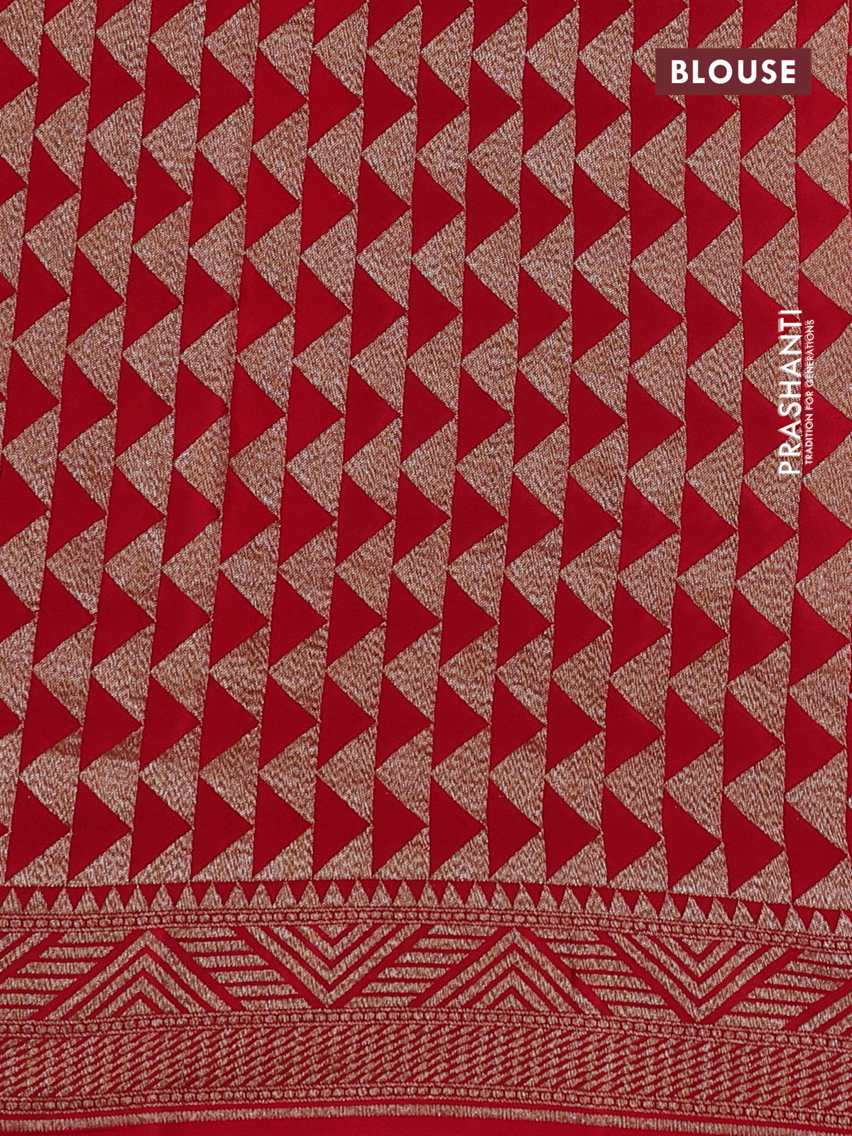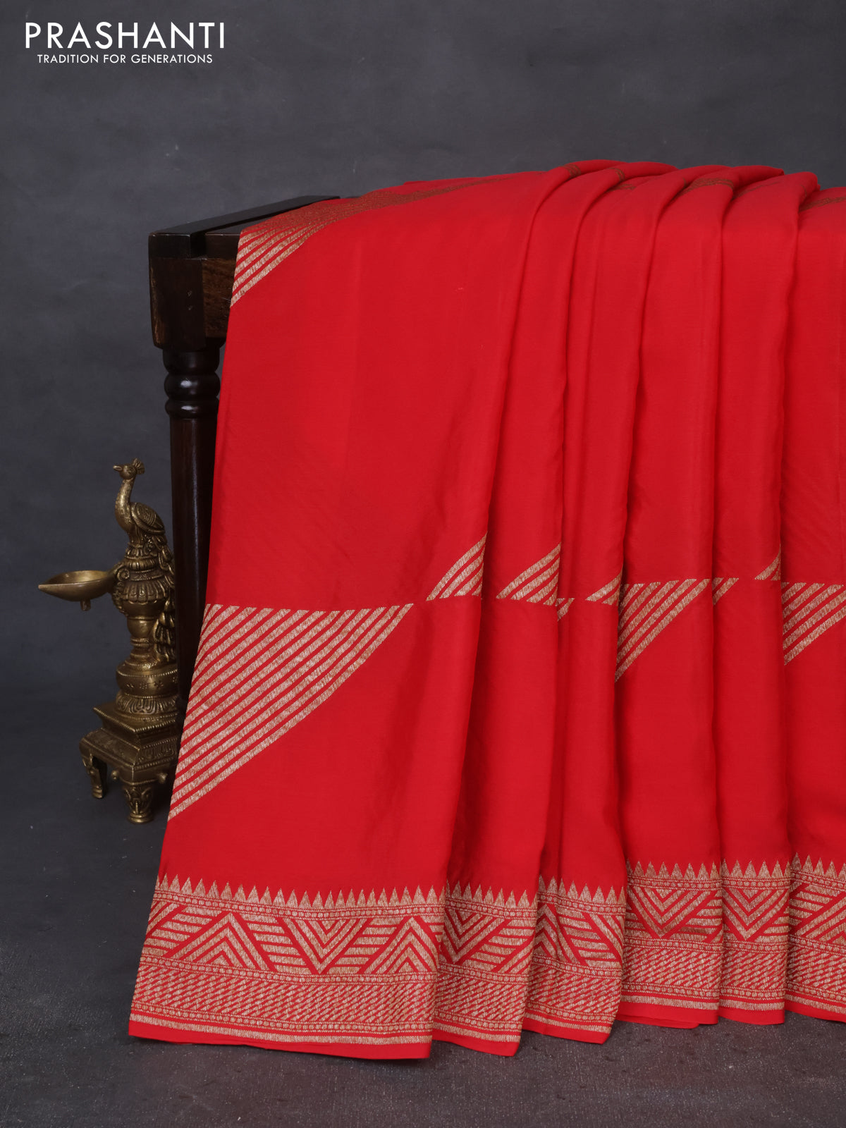 Banarasi crepe saree red with allover thread & zari geometric weaves and woven border