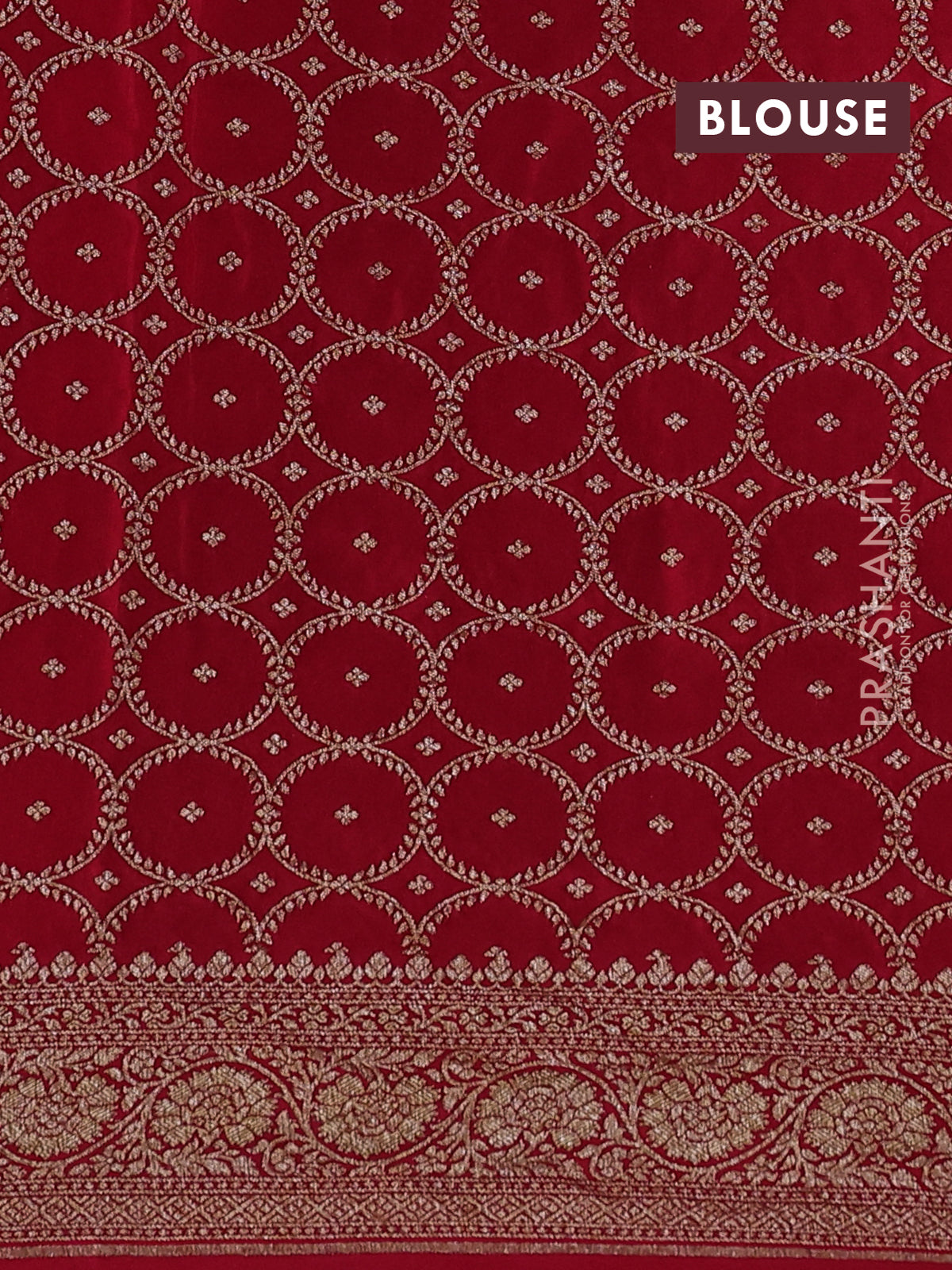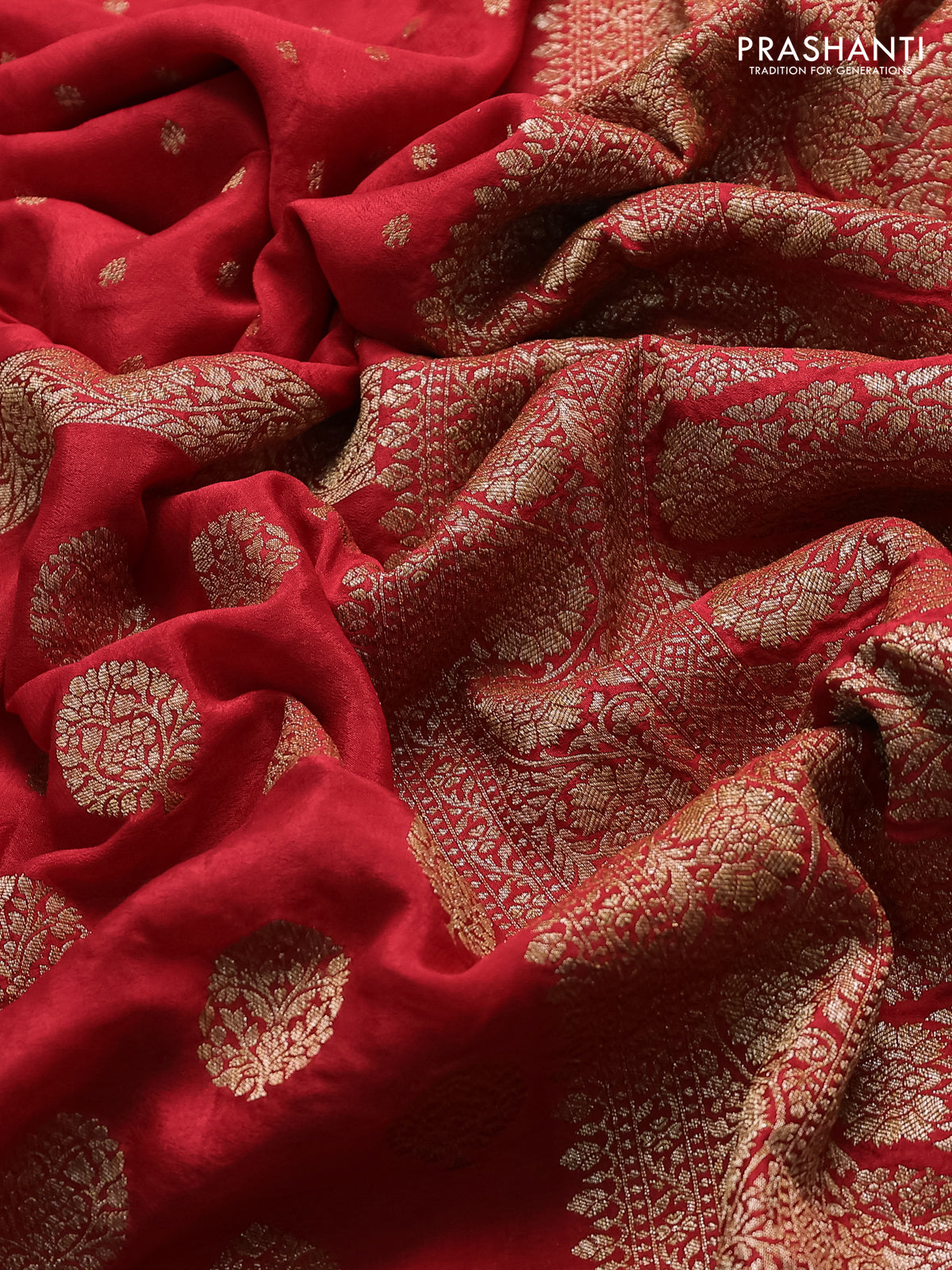 Banarasi crepe saree red with half & half style and woven border