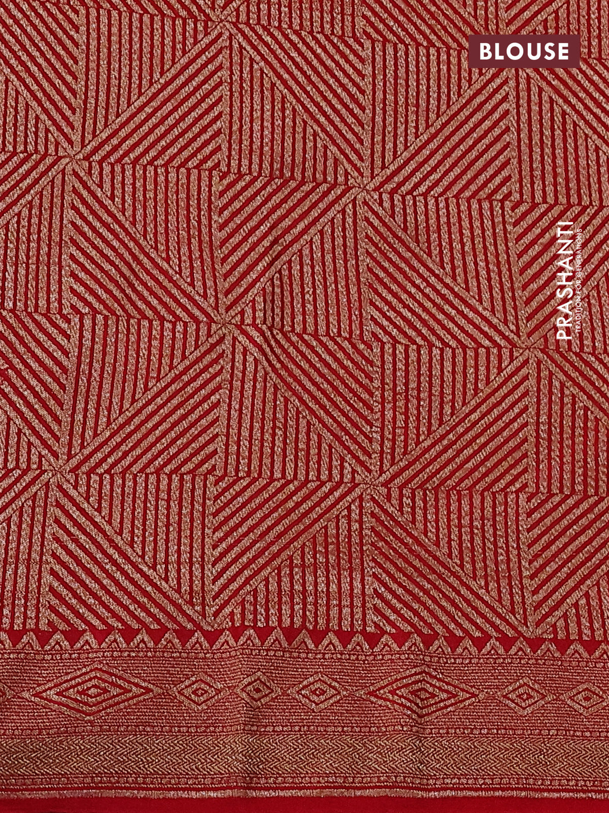 Banarasi crepe saree reddish pink with allover thread & zari geometric weaves and woven border