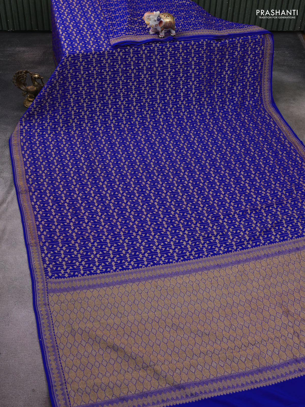Banarasi crepe saree royal blue with allover geometric weaves and woven border
