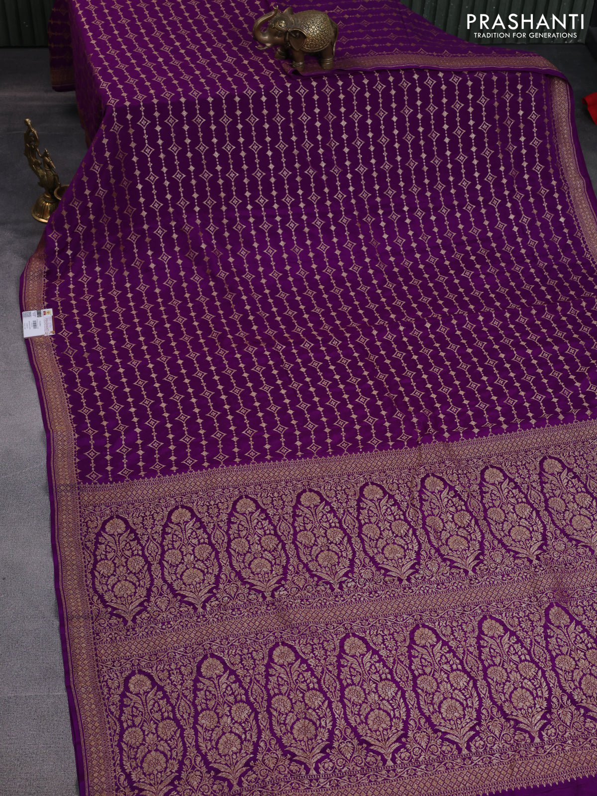 Banarasi crepe saree violet with allover thread & zari geometric weaves and woven border