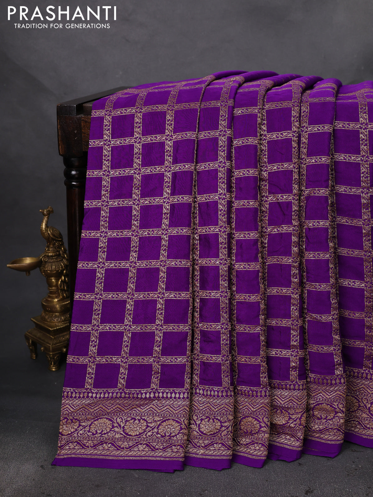 Pure Banarasi Crepe sarees featuring a fluid drape and graceful sheen, offering a perfect blend of heritage craftsmanship and modern elegance. Curated by Prashanti for effortless luxury and timeless style.