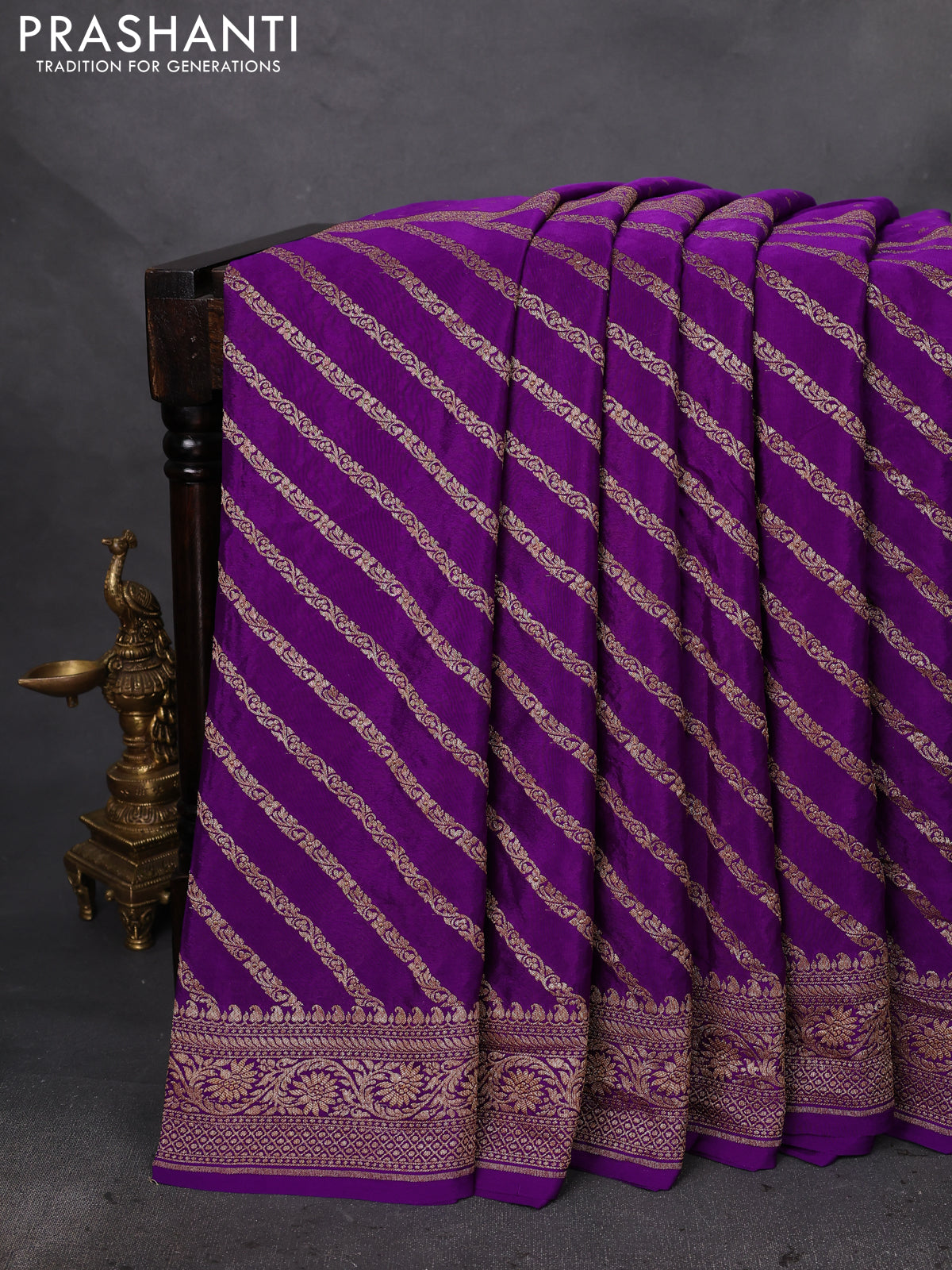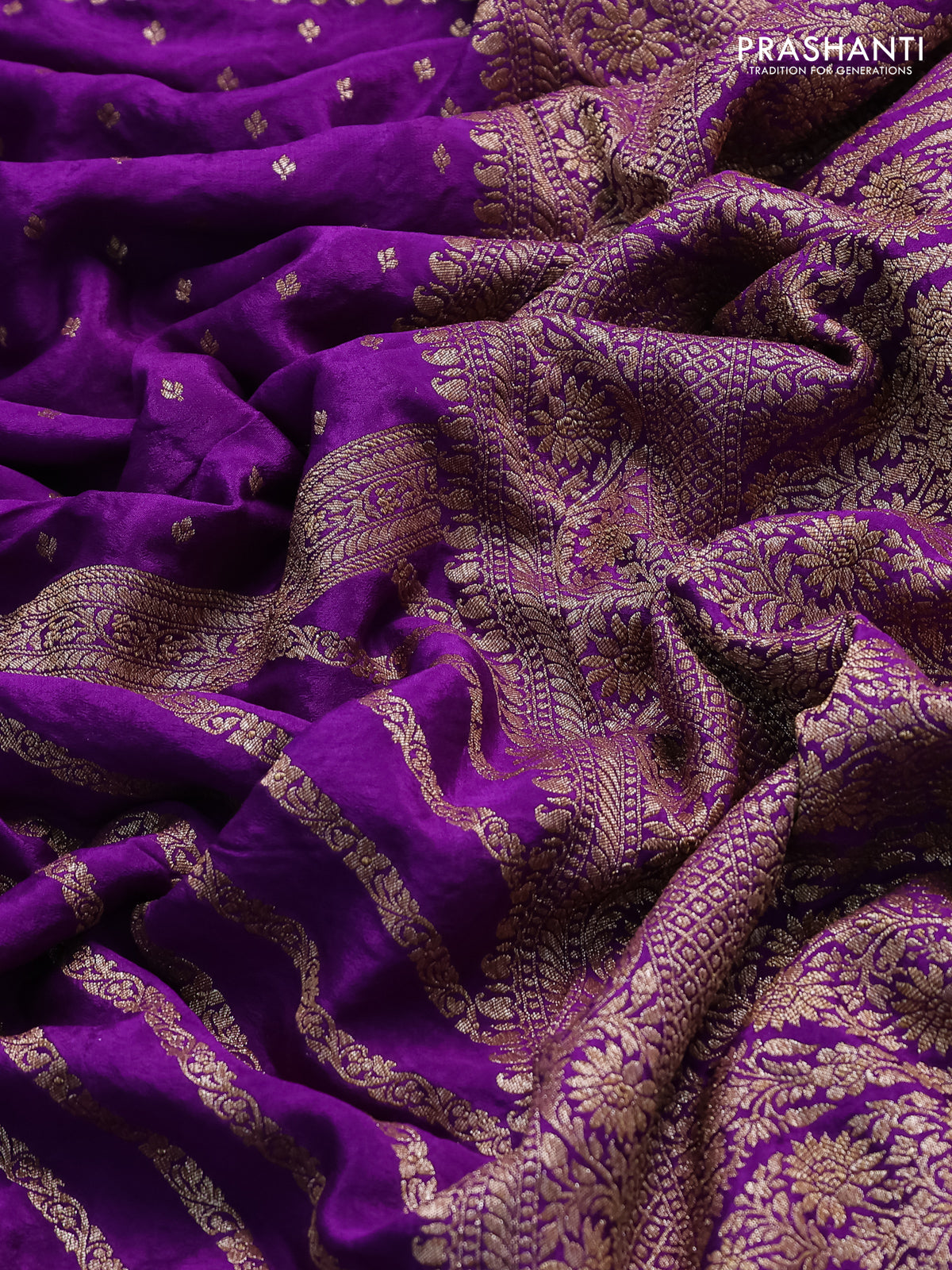 Pure Banarasi Crepe sarees featuring a fluid drape and graceful sheen, offering a perfect blend of heritage craftsmanship and modern elegance. Curated by Prashanti for effortless luxury and timeless style.