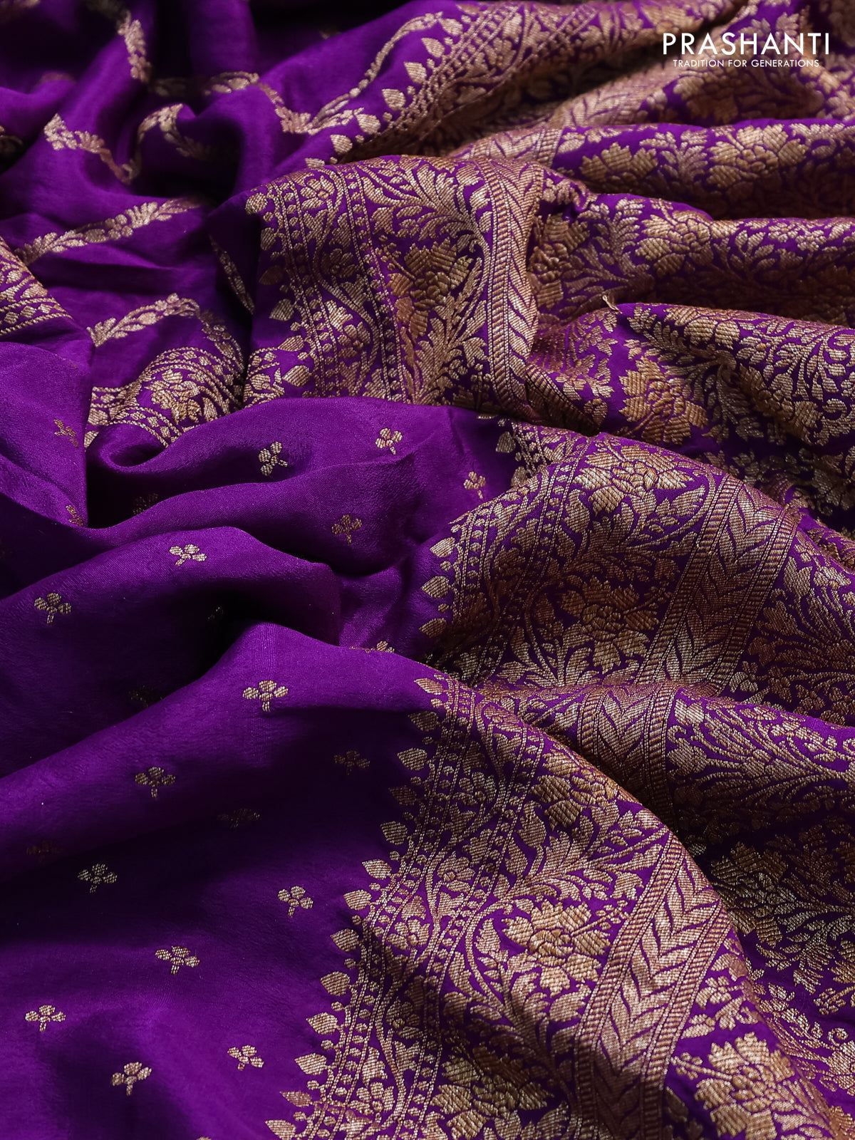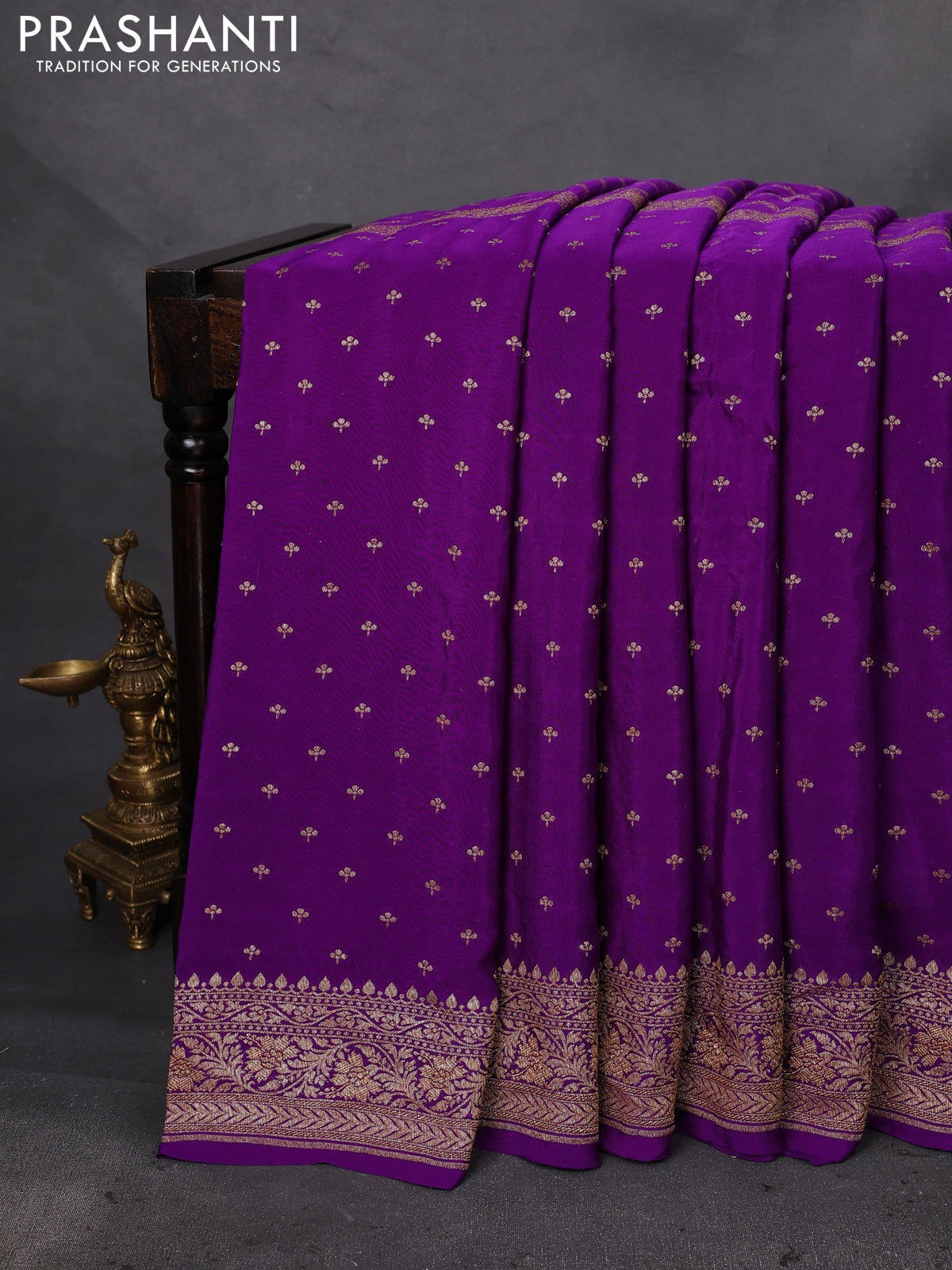 Pure Banarasi Crepe sarees featuring a fluid drape and graceful sheen, offering a perfect blend of heritage craftsmanship and modern elegance. Curated by Prashanti for effortless luxury and timeless style.