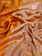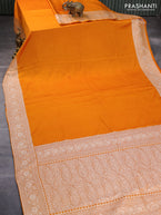 Banarasi crush crepe saree mustard yellow with plain body and zari woven border