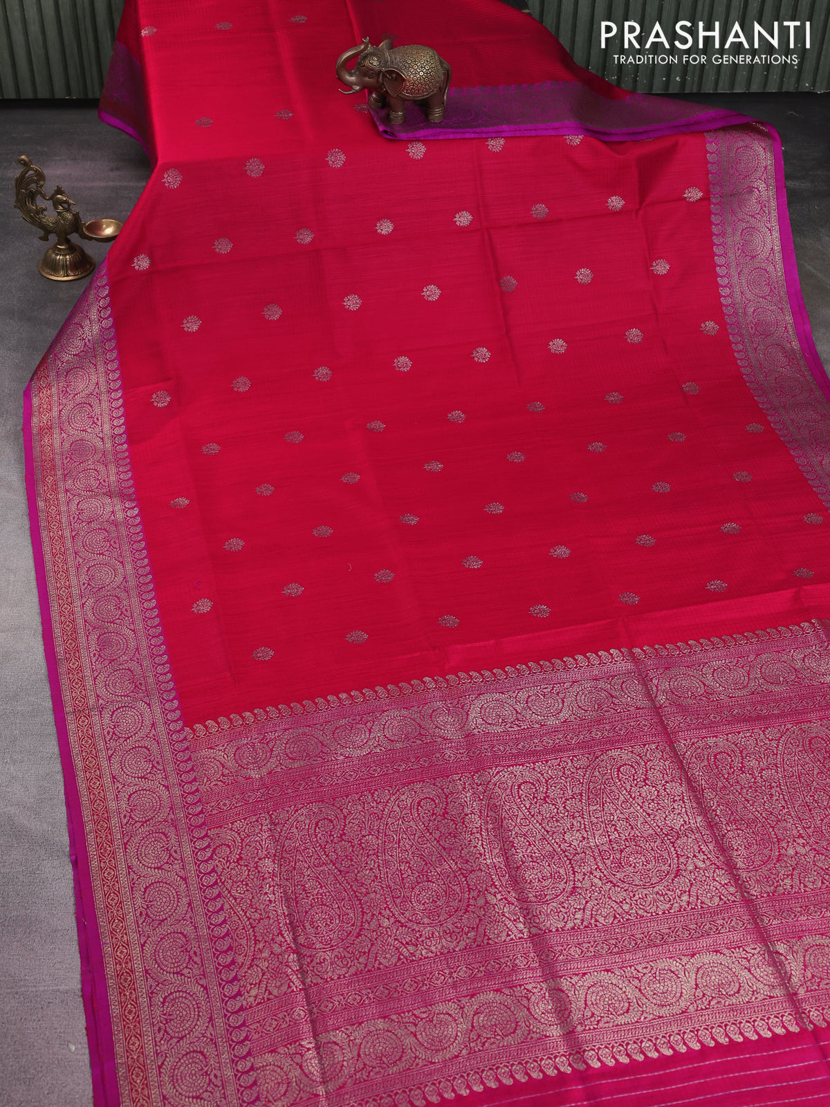 Banarasi dupion silk saree red and purple with thread & zari woven buttas and woven border
