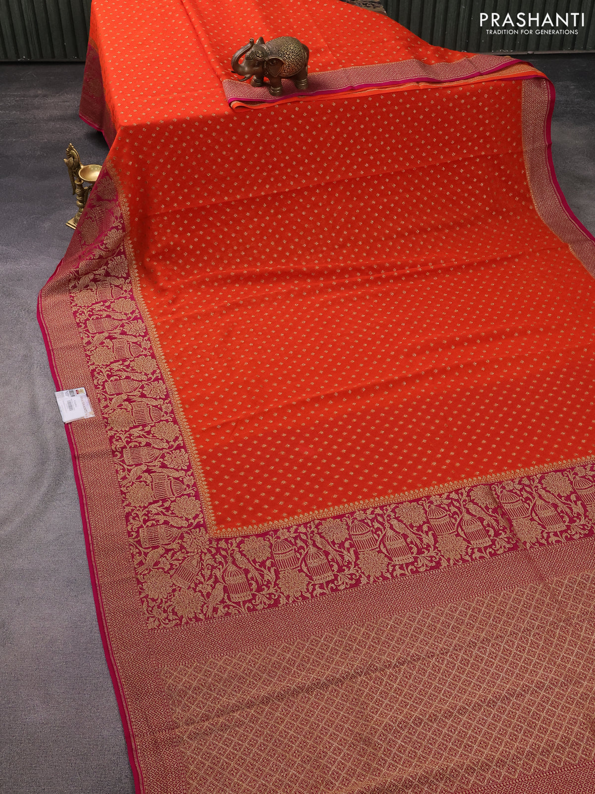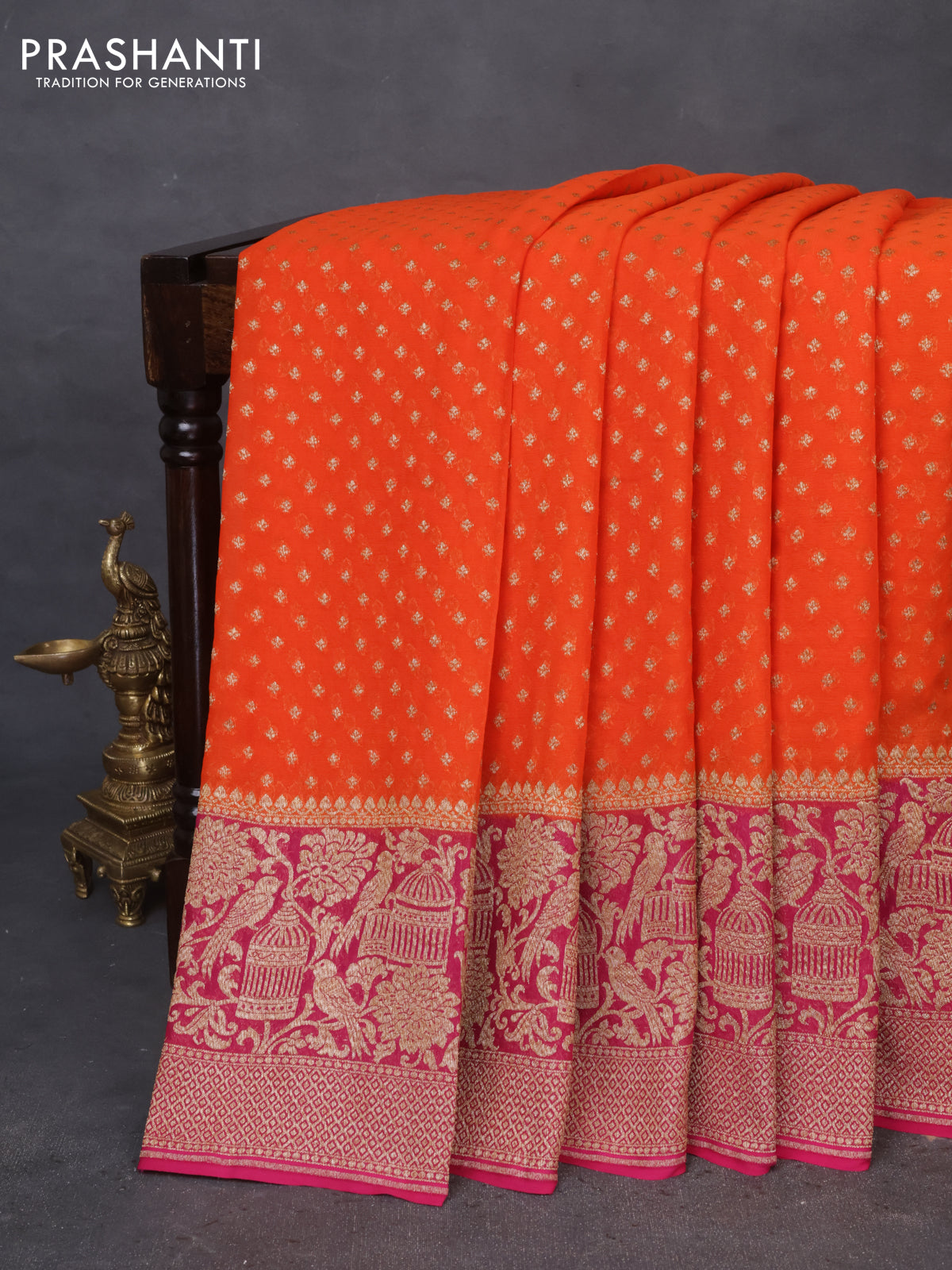 Banarasi georgette saree orange and dark pink with allover thread & zari butta weaves and long woven border