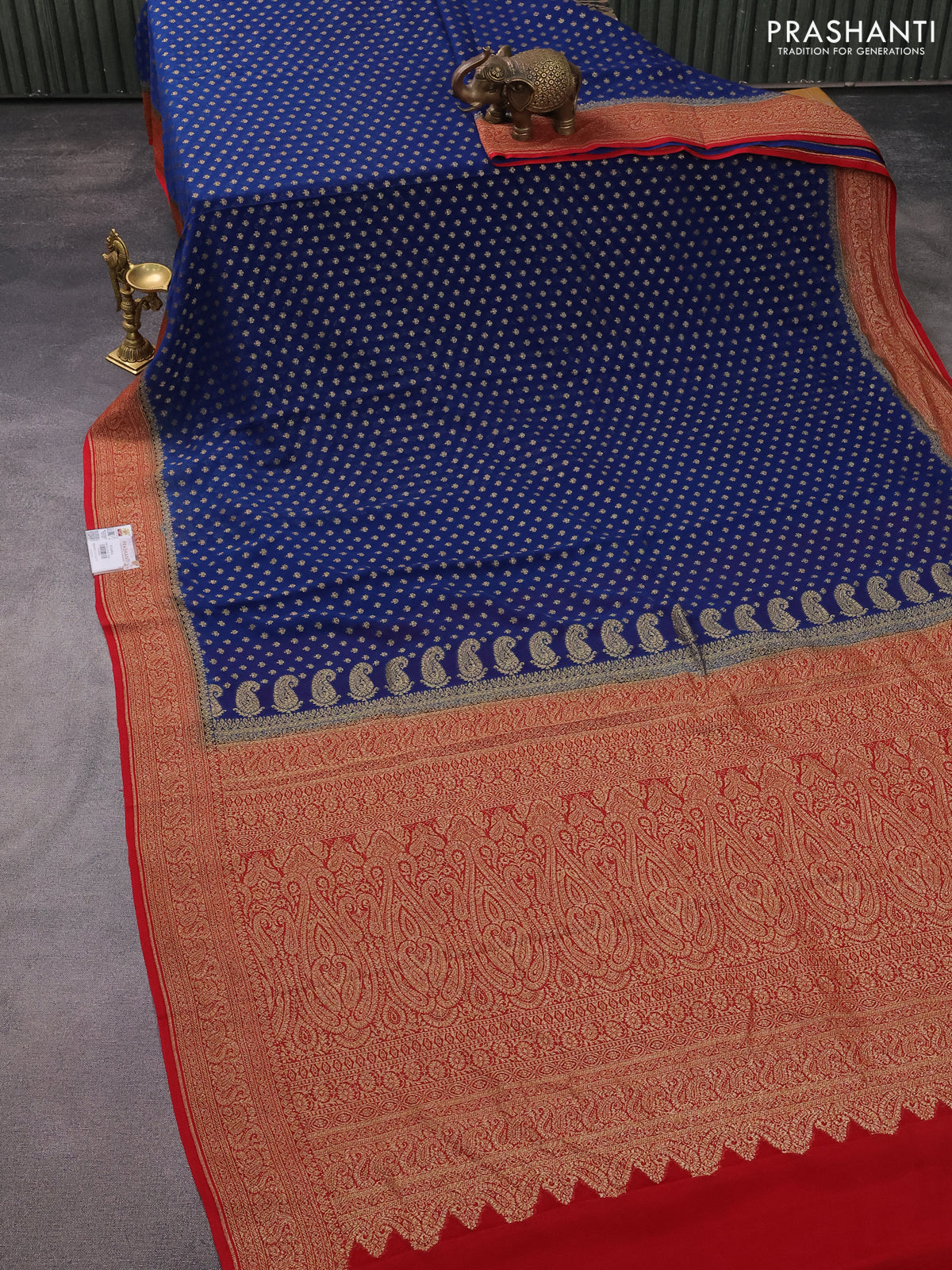 Banarasi georgette saree peacock blue and red with allover thread & zari butta weaves and woven border